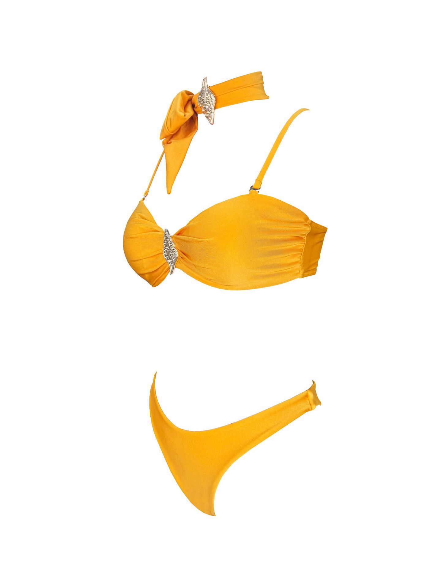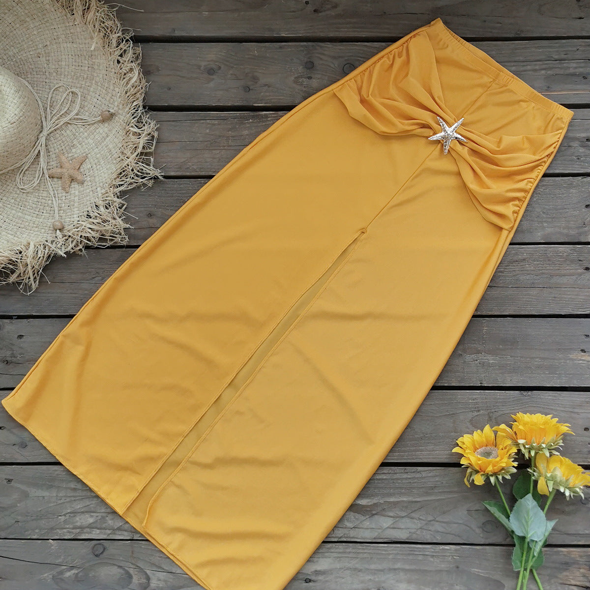 Solid Color Tube Top Sexy Halter Bikini Split Swimsuit Skirt Three Piece Set