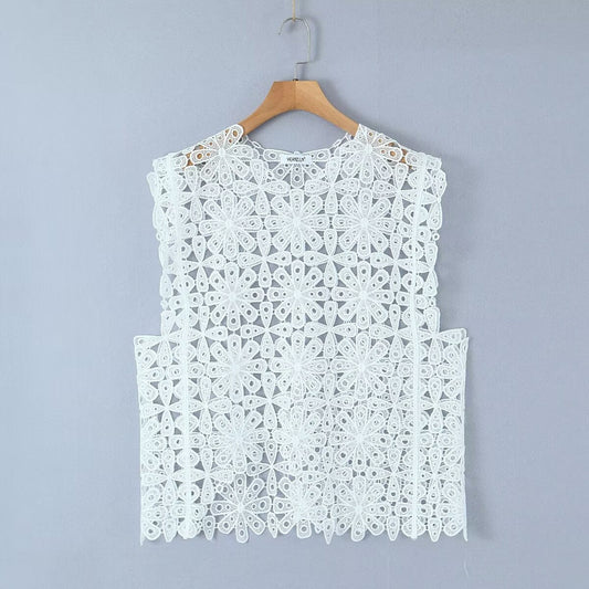 Summer Three Color Craft Floral Lace Vest Irregular Asymmetric Top