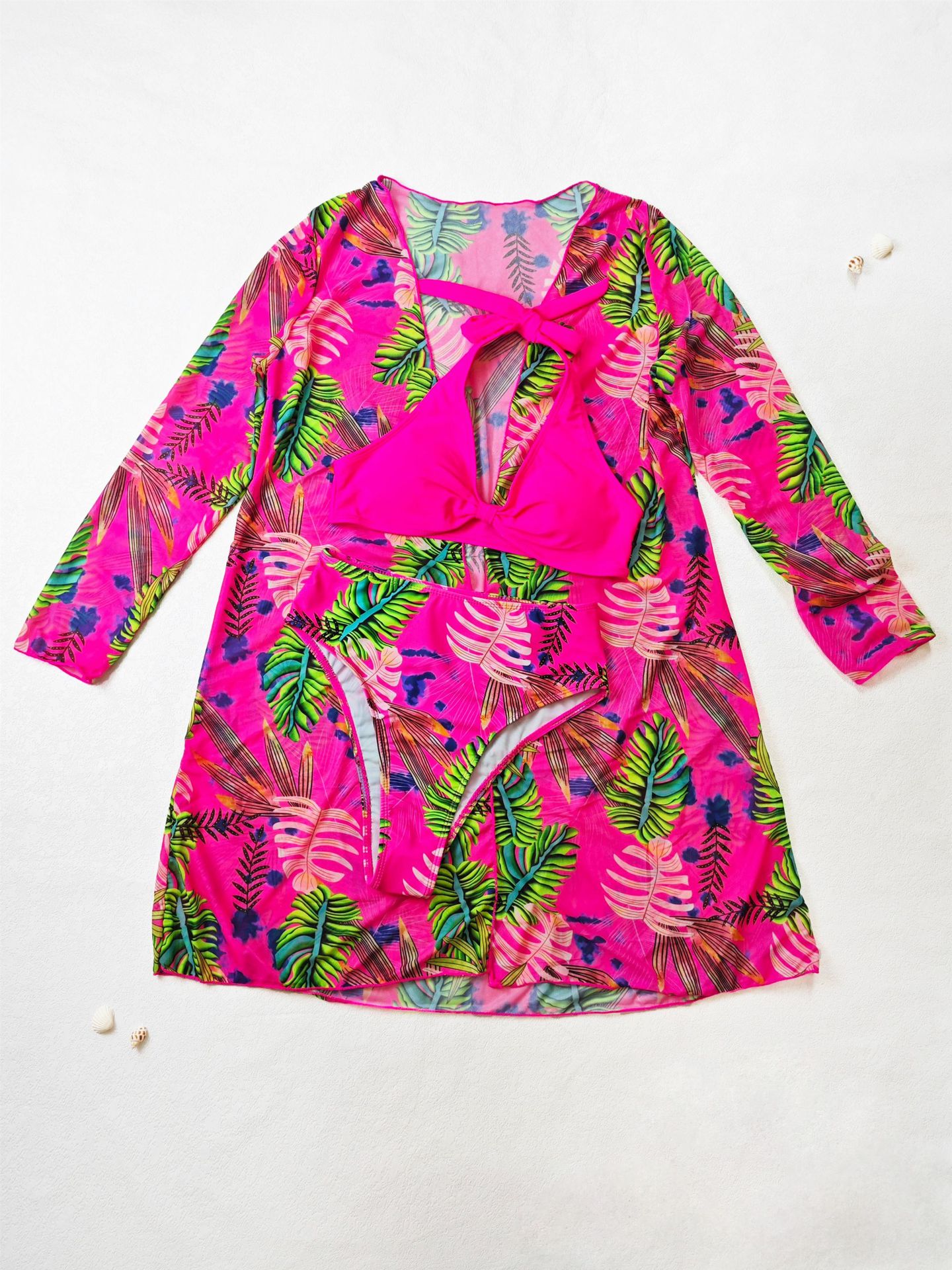 Bikini Women Split Three Piece Long Sleeve Shawl Blouse Swimsuit