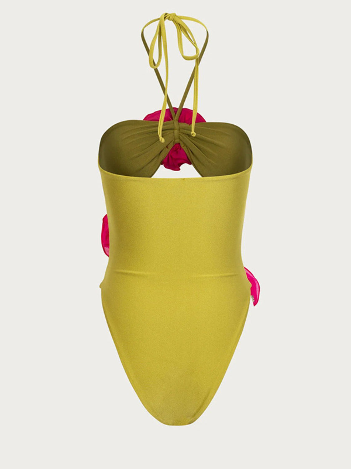 Turn heads poolside or on the beach with our Bloom & Bold Cutout One-Piece! This show-stopping swimsuit features sultry wrap-around cutouts and bold 3D floral appliqués that add a playful, high-fashion twist. The halter neck tie offers customizable support, while the removable padding gives you the option for added shape and comfort.
