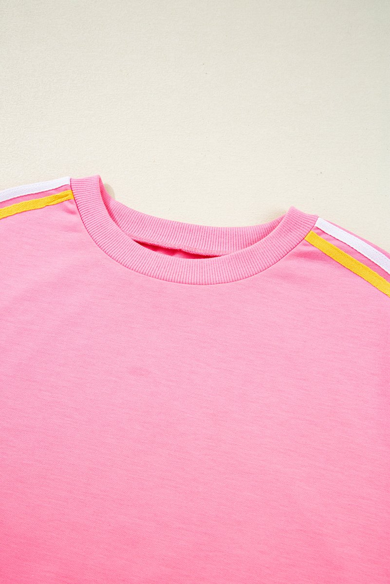Bonbon Color Contrast Crewneck T Shirt and Wide Leg Pants Set