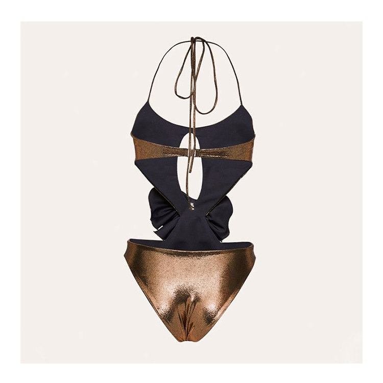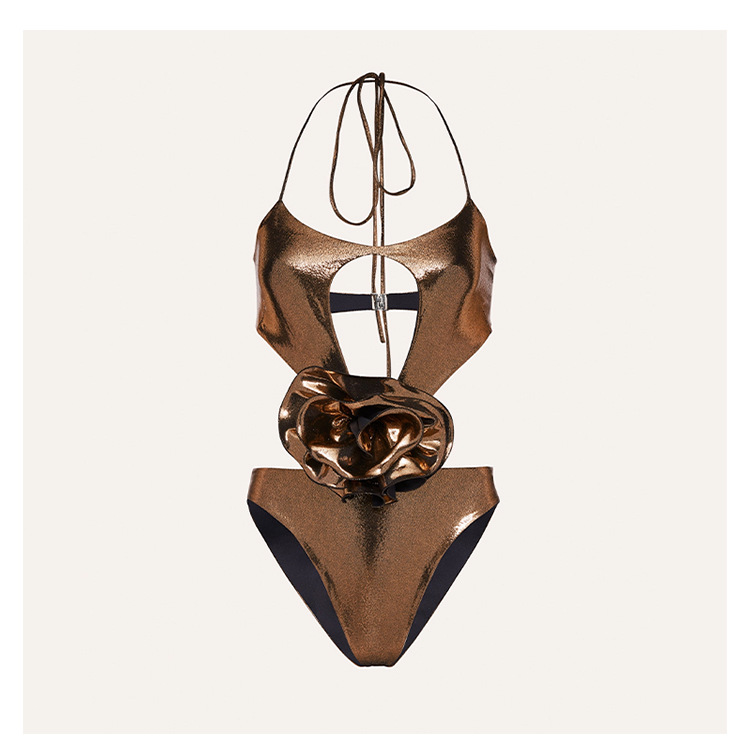 Gold Handmade Floral Halter Hollow Out Cutout out Swimsuit Women