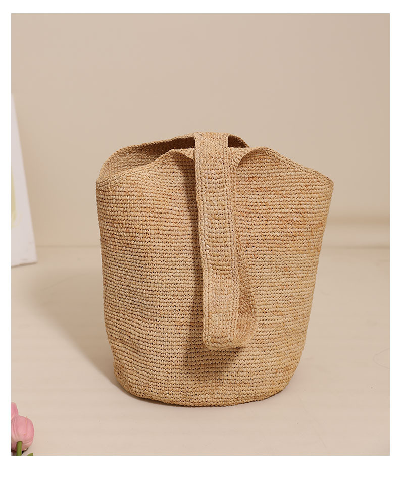 Large Capacity Shoulder Straw Bag Bucket Straw Bag Woven Bag Vacation Beach Bag Women Bag
