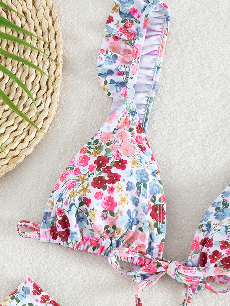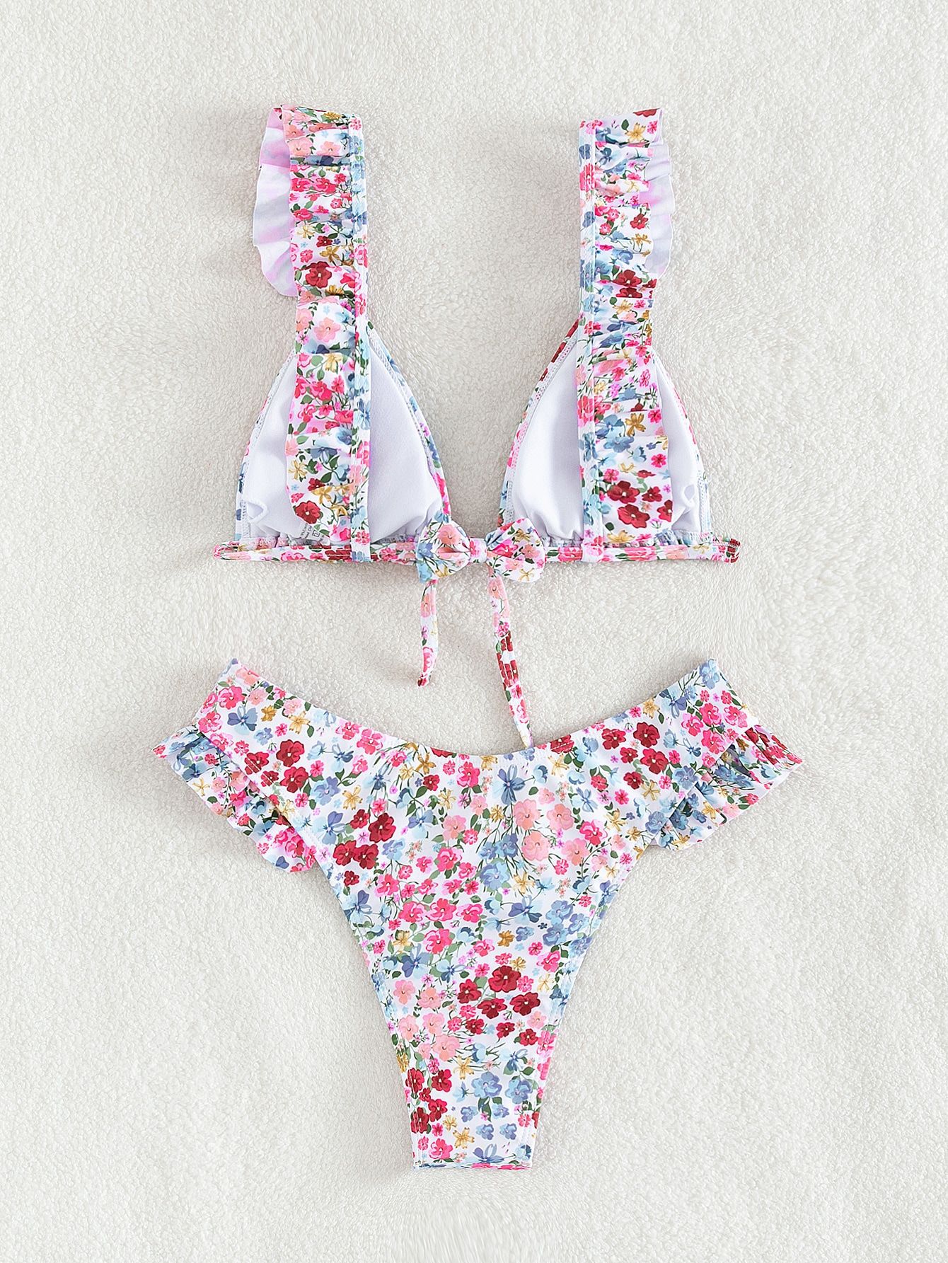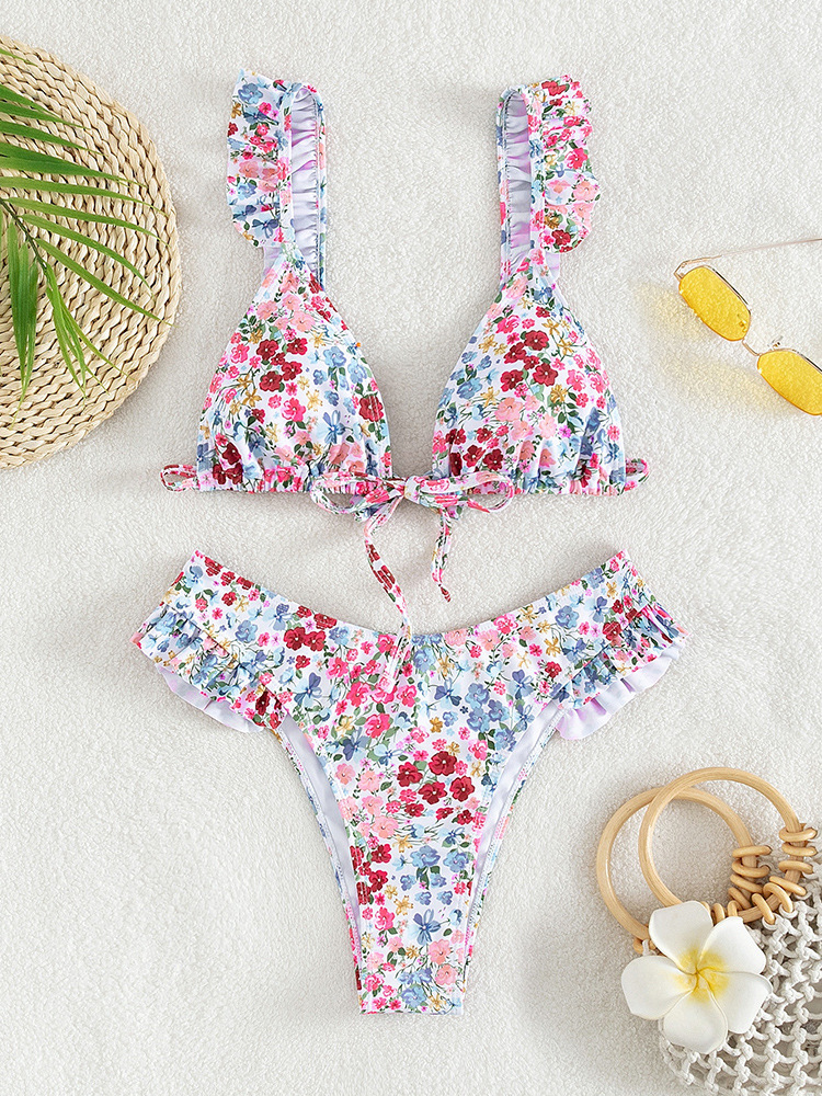 Sexy Lacing Bikini Small Floral Swimsuit Flying Bikini
