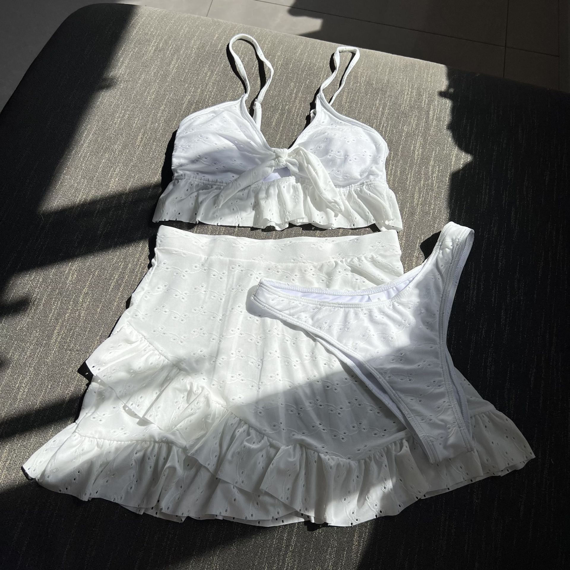 Solid Color Floral Special Fabric Three Piece Swimsuit Bikini