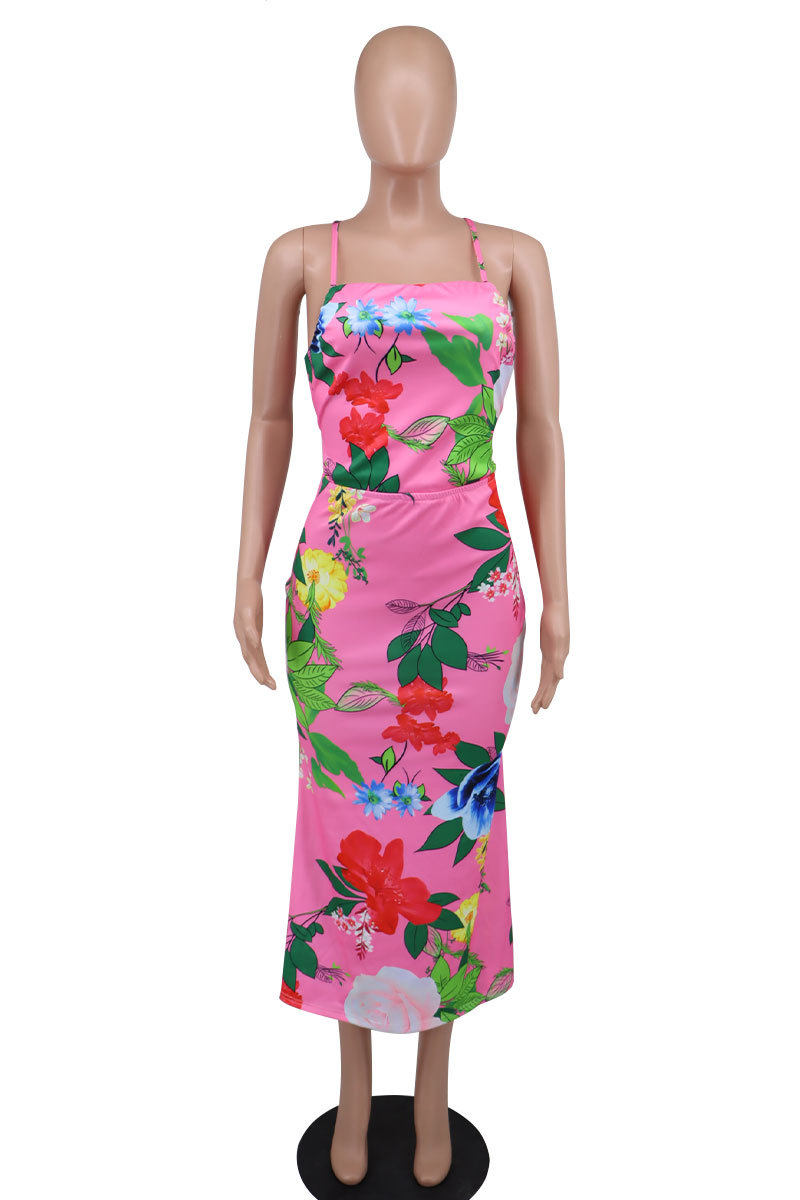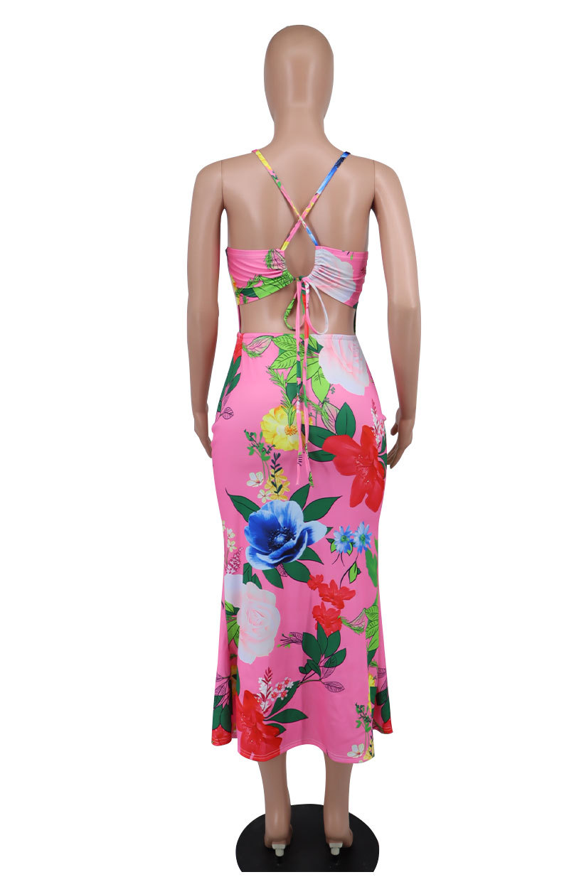 Summer Sleeveless Printed Backless Dress High-Grade Women Clothing