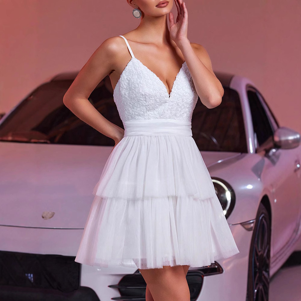 Summer Women Clothing Sexy Short Dress White Mesh Camisole Short Evening Dress