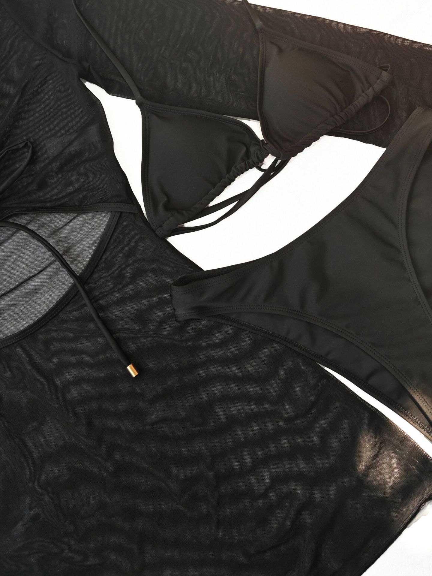 Three Piece Sets Bikini Tulle Skirt Beach Dress Blouse Sexy Swimsuit Women