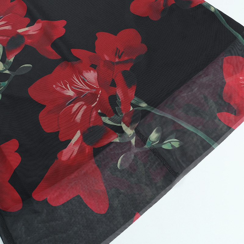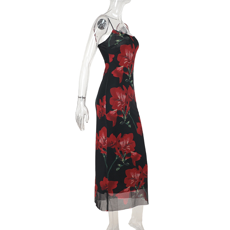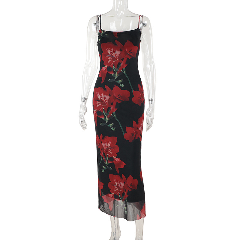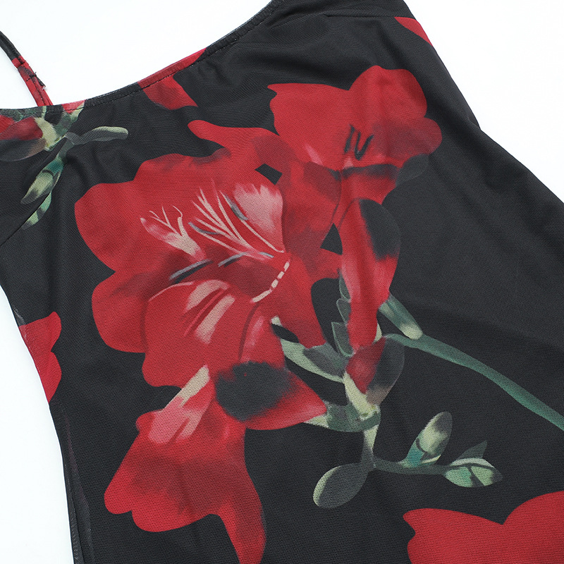 Spaghetti Strap Floral Print Stretch Slim Fit Dress Summer Waist Sheath Dress