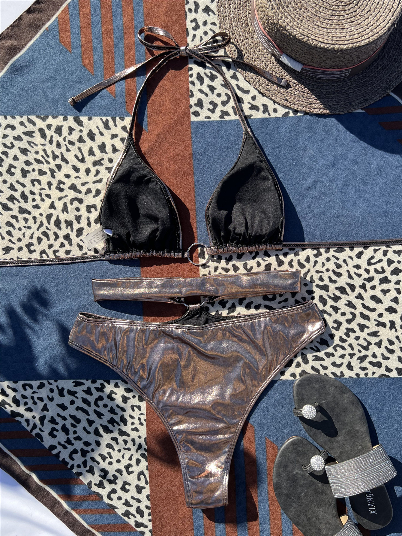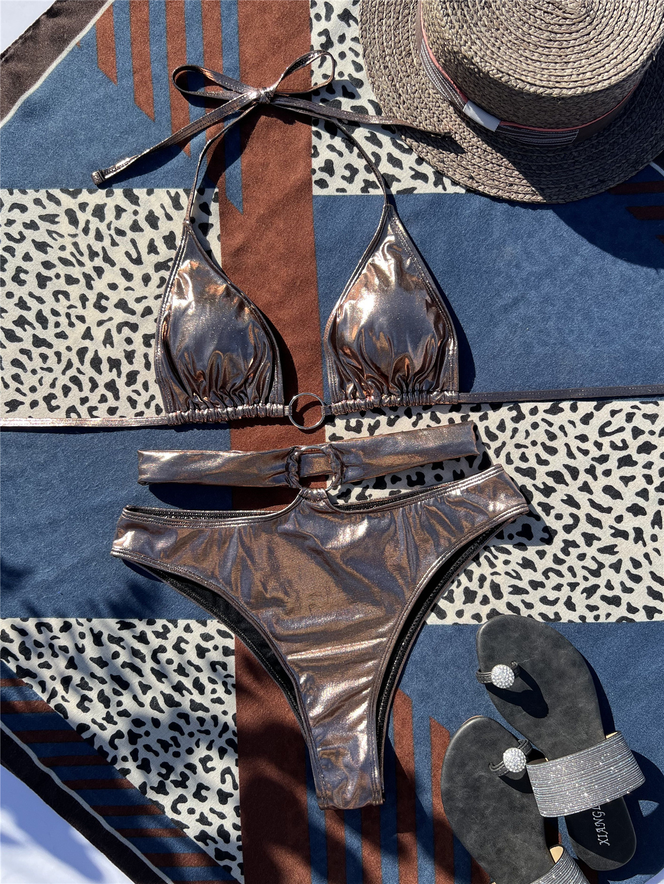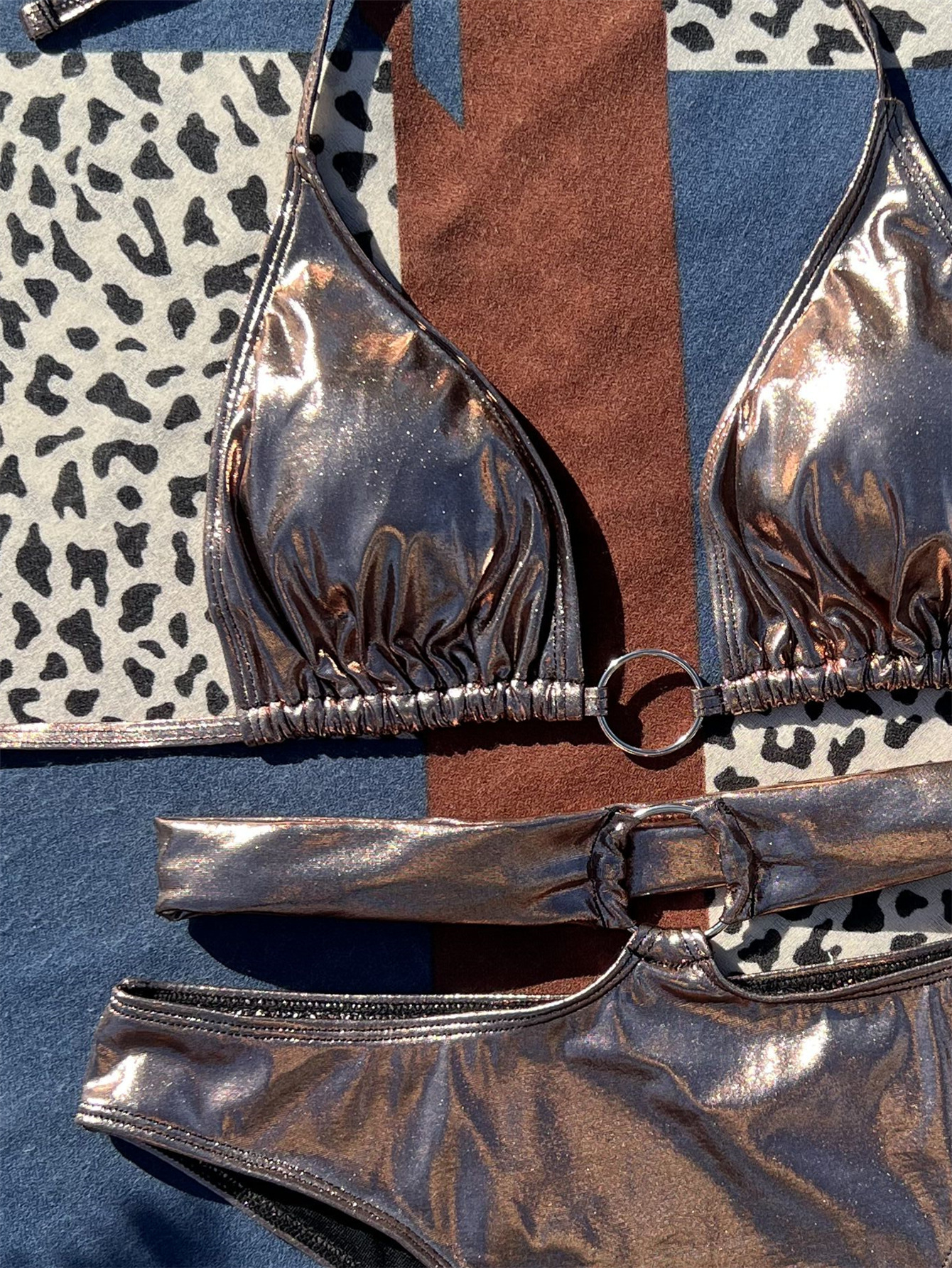 Summer Women Seperated Swimwear Sexy Metal Ring Lace up Light Cloth Bikini