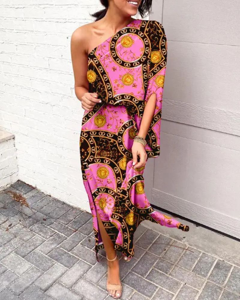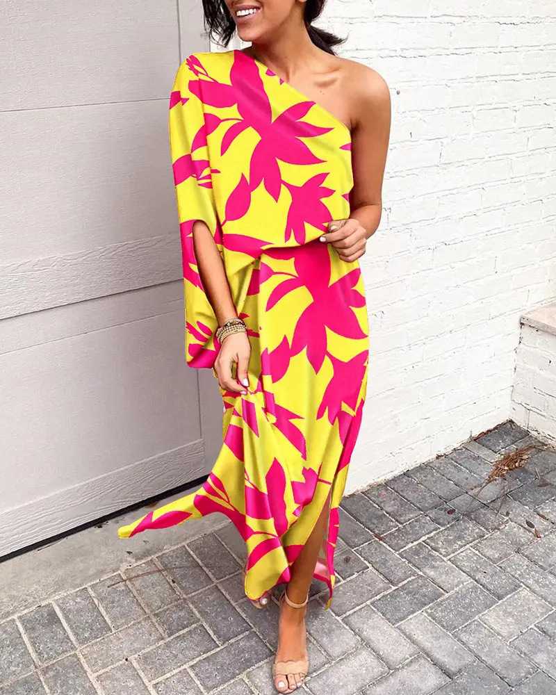Women Clothing Dress Sexy Oblique Shoulder Elegant Single Side Sleeve Dress for Women