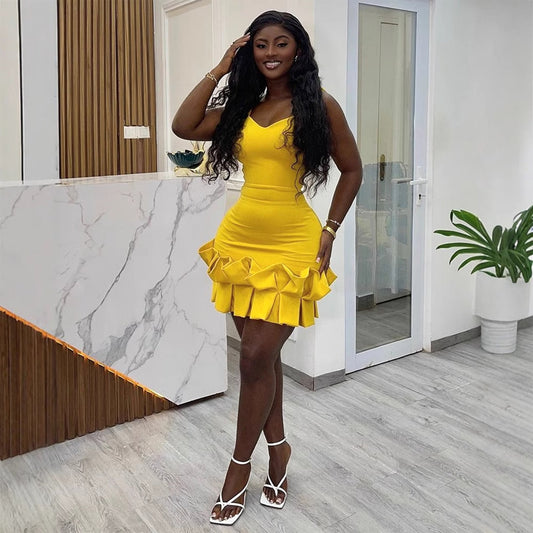 Elastic Waist Tightening Pleated Lace Backless Sheath Dress