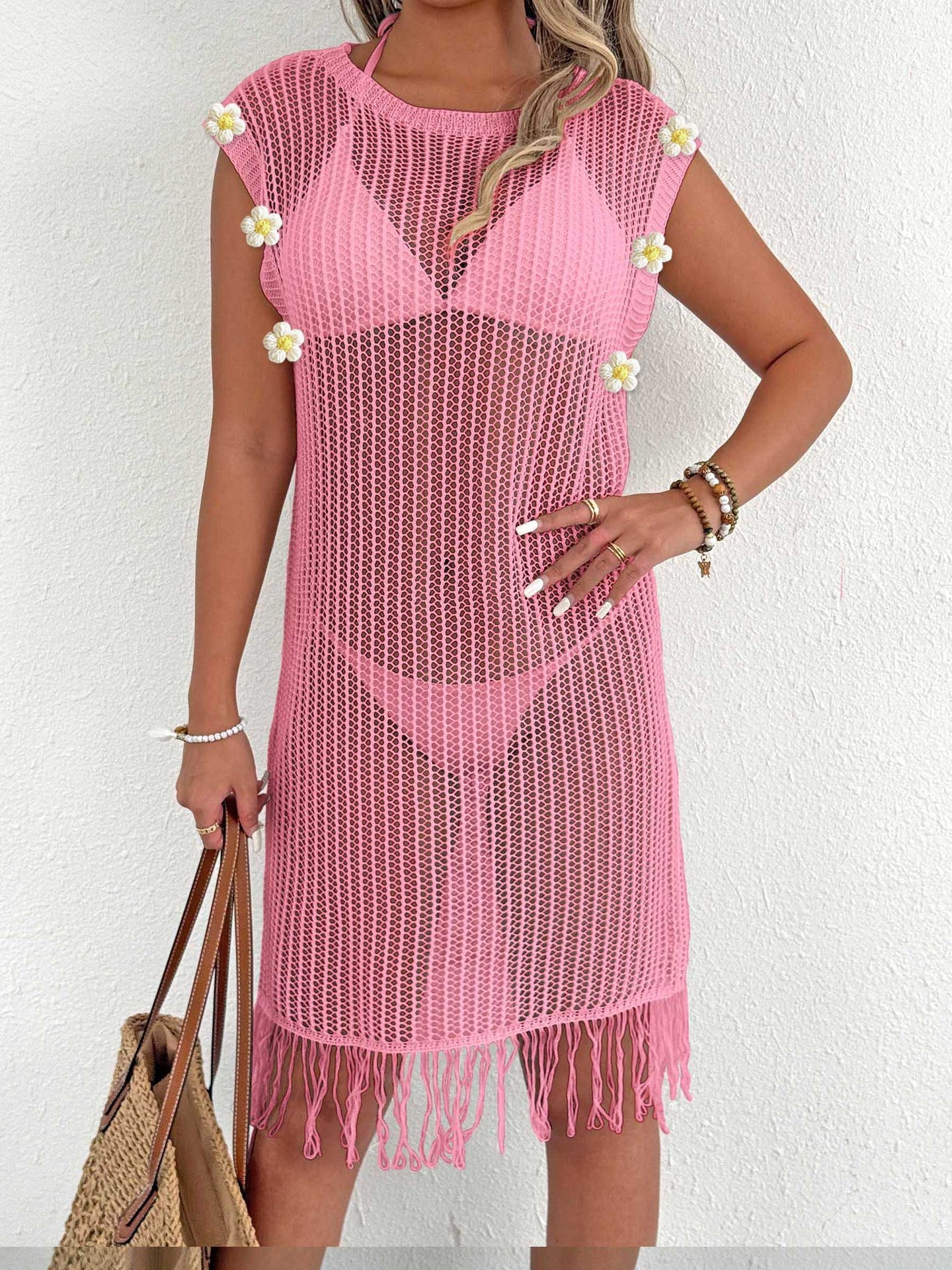 Beach Dress Vacation Beach Cover Up Women Clothing Sexy Cutout See through Tassel Stitching Dress