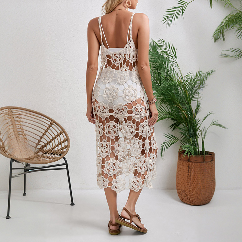 Beach Dress Women Solid Color Sexy Cutout Beach Bikini Swimsuit Blouse Sun Protective Clothing