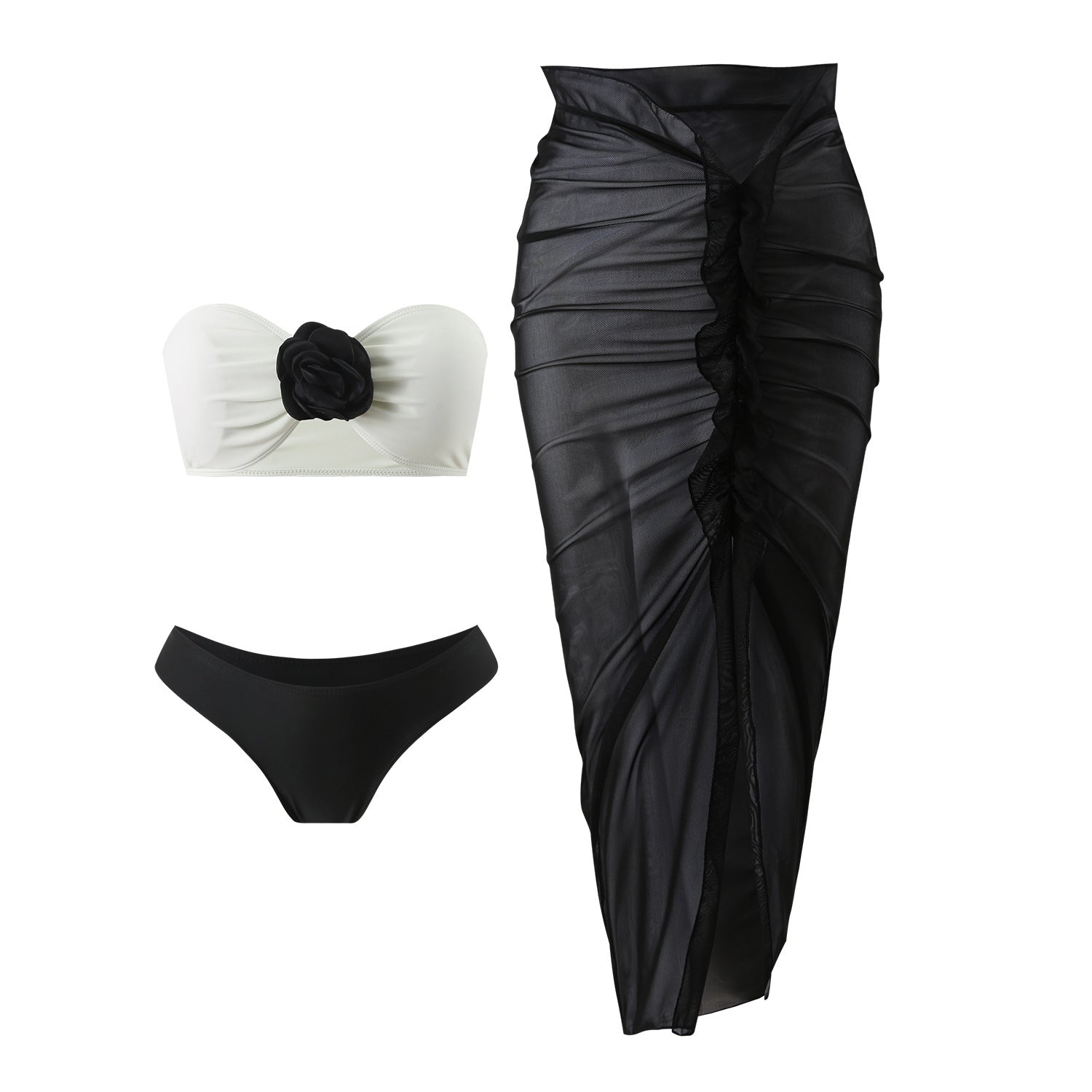 Color Matching Sexy Rose Three Piece Set Mesh Maxi Dress Swimwear Swimsuit Bikini