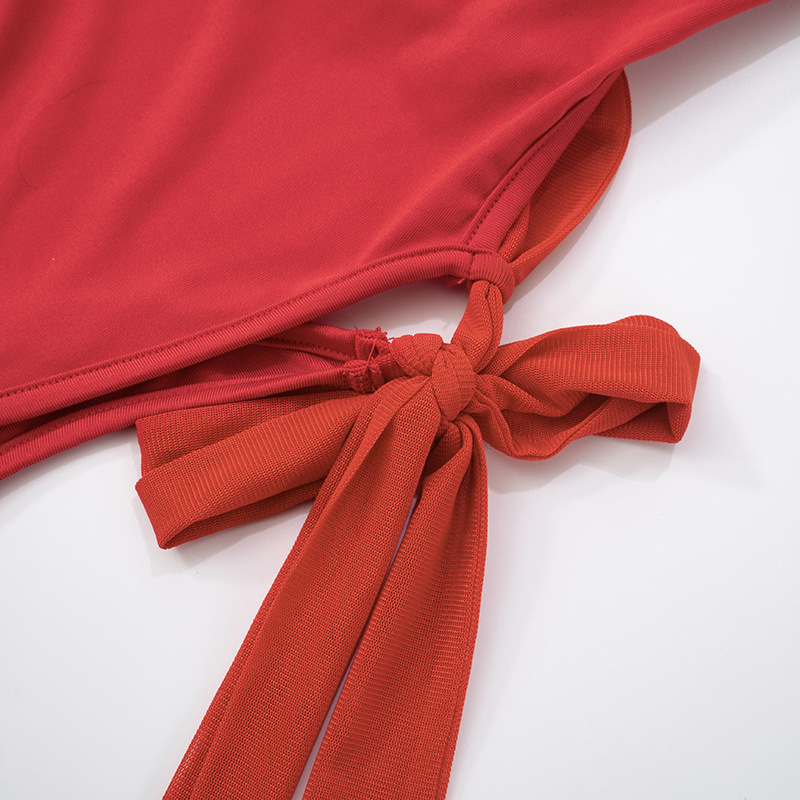 One Piece Swimsuit Women Sexy Cover Belly Backless Solid Color Swimsuit Dress