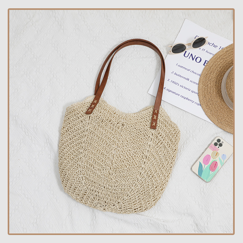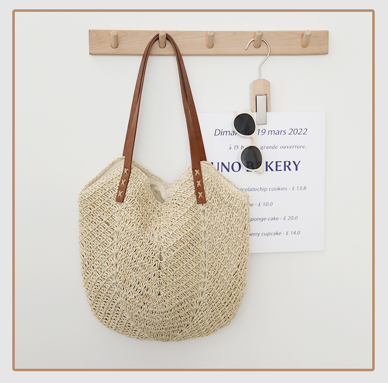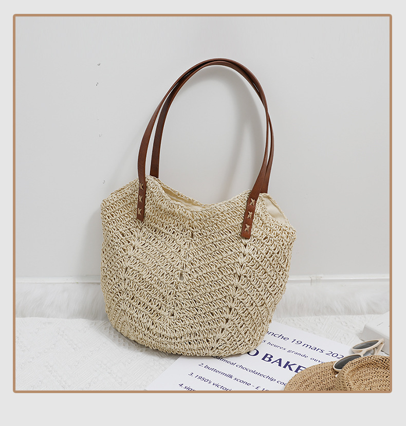 Retro Straw Bag Portable Large Capacity Shoulder Woven Bag Vacation Beach Bag Women Bag