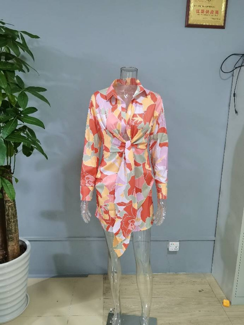 Sexy Women Wear Digital Printing Series Button Long Sleeve Shirt Dress