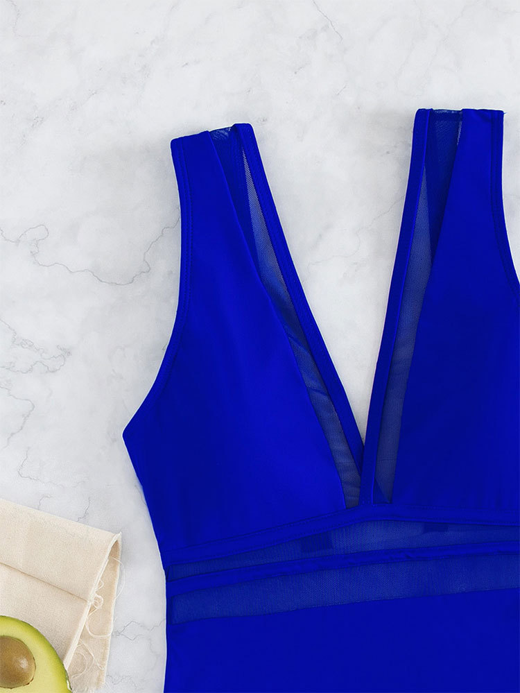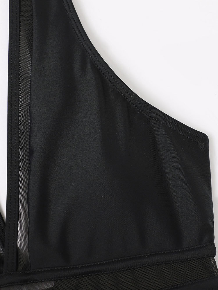 Solid Color Spun Yarn One Piece Swimsuit Women Deep V Plunge Sexy Spring Swimwear