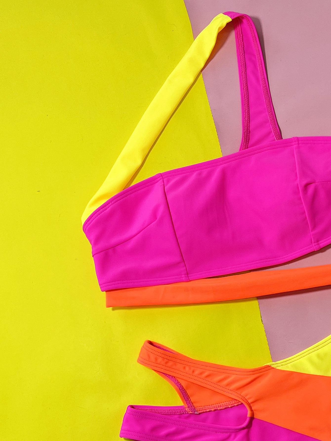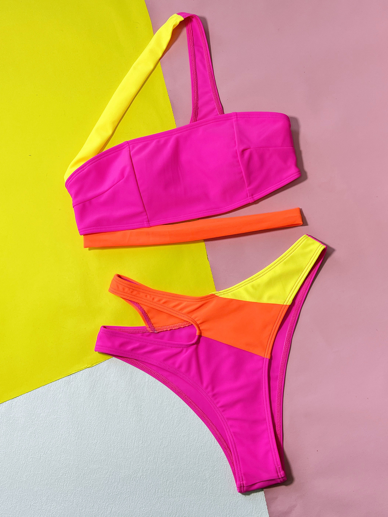 Split Bikini Bikini Hollow Out Cutout Contrast Color Sexy Split Swimsuit