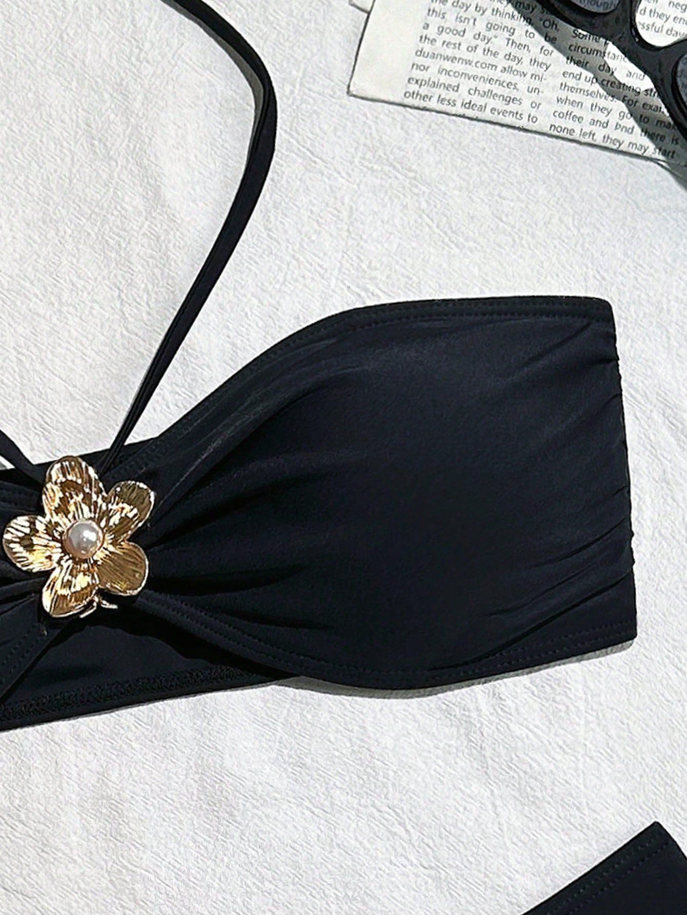 Split Solid Color Swimsuit Swimsuit Summer Sexy Halter Shoulder Strap Women Bikini