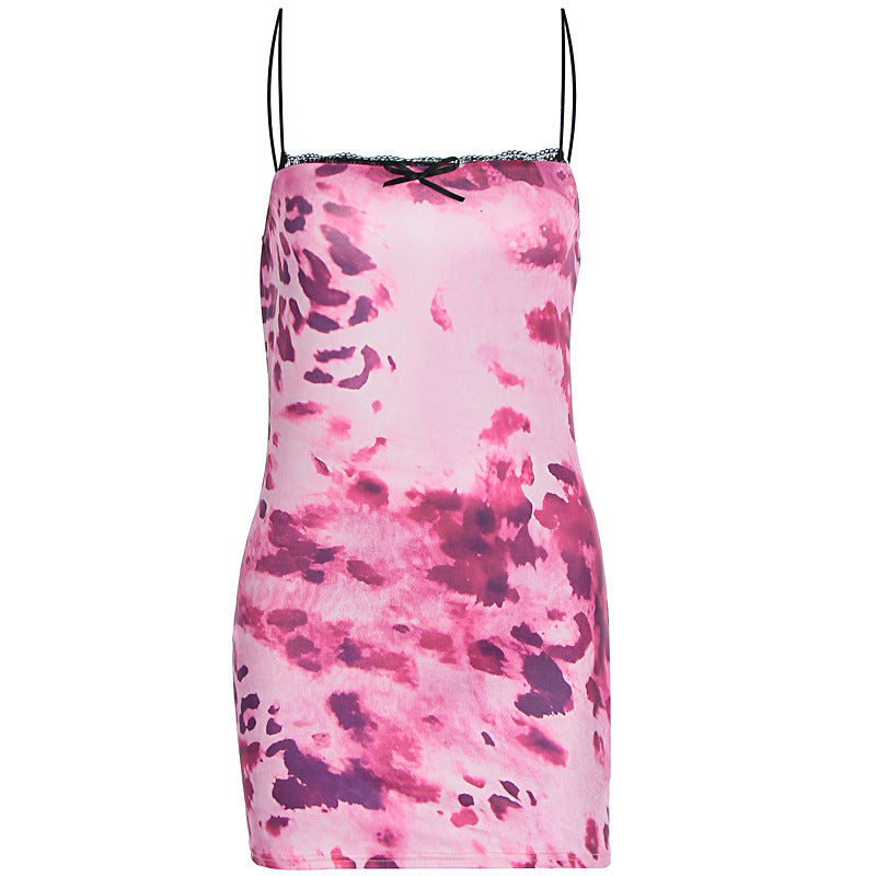Summer Printed Sexy Sling Backless Waist Trimming Hip Bag Dress