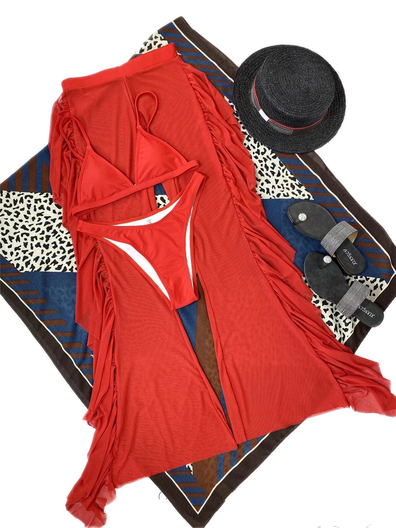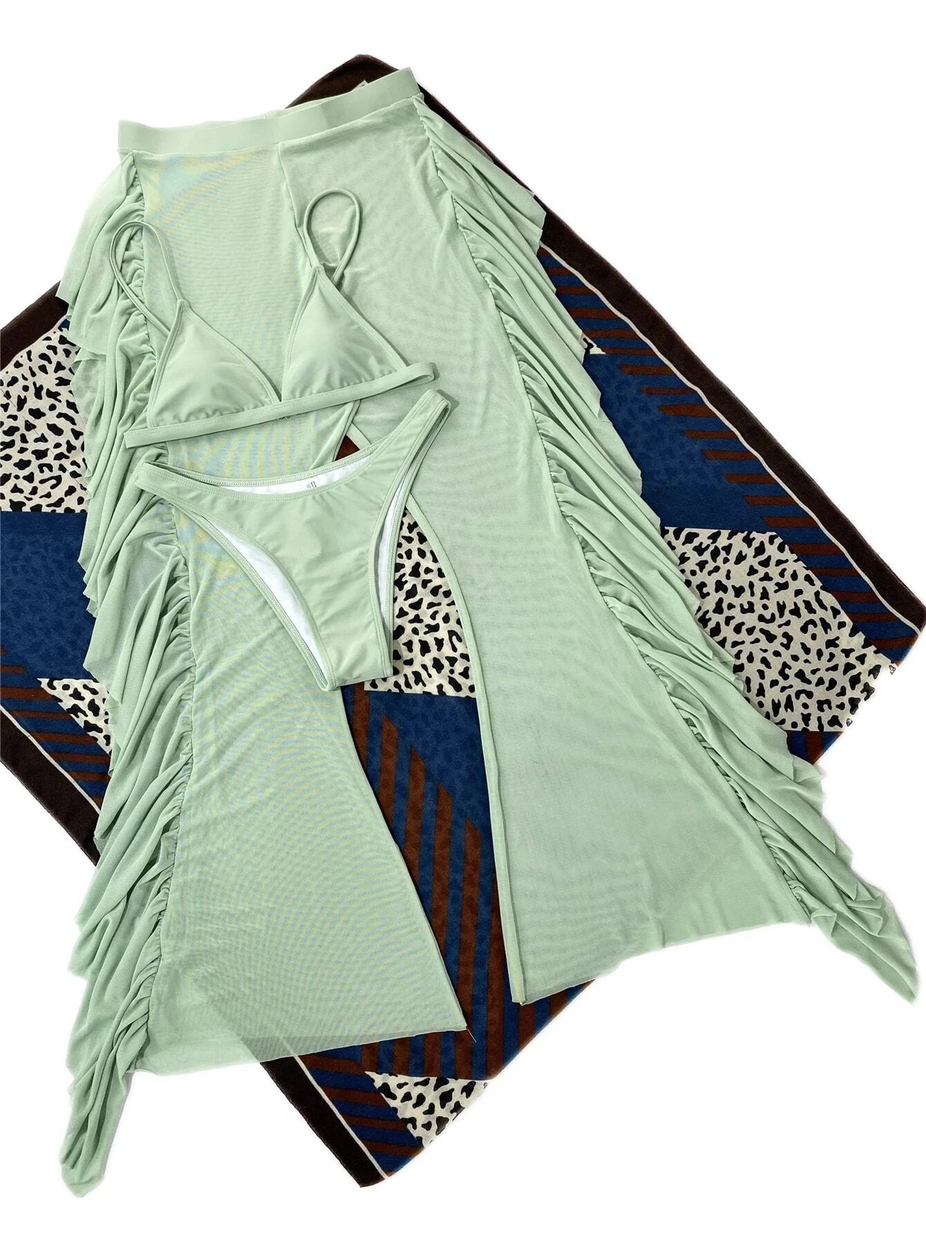 Swimsuit Women Split Three Piece Mesh Solid Color Trousers Bikini