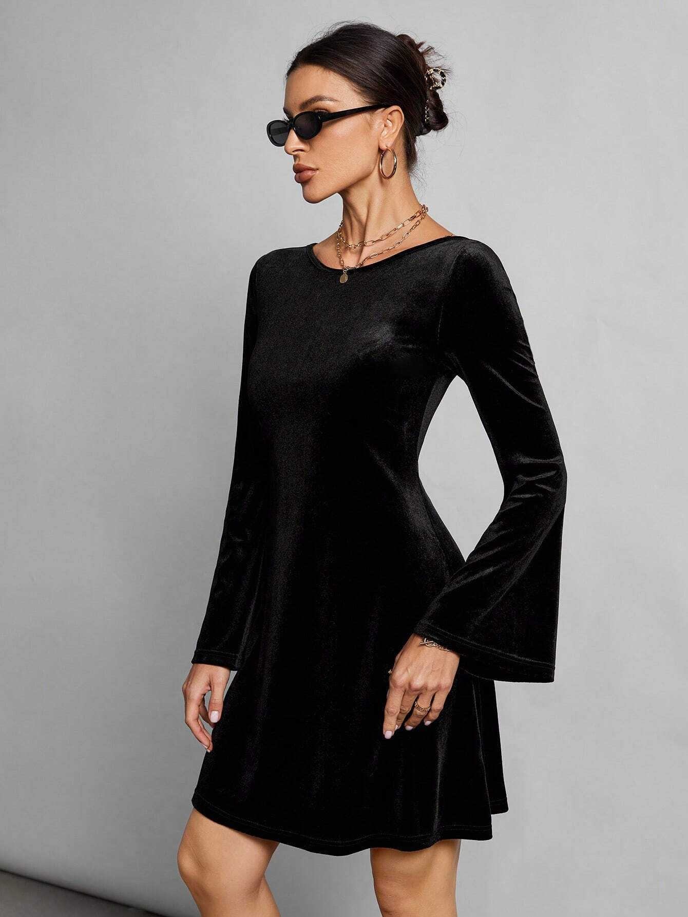 Women Clothing Simple Intellectual Dress Autumn Winter Backless Sexy Lace Up All Match Black Dress