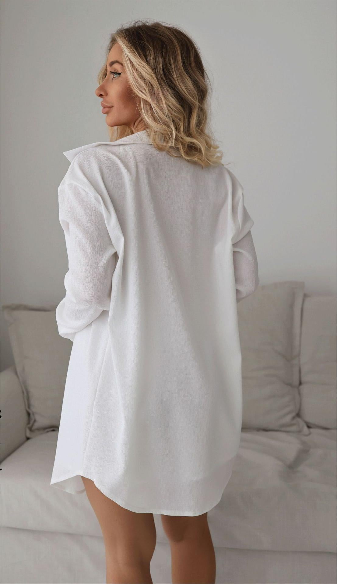 Beach Cover Up Solid Color Long Sleeved Shirt Two Piece Set Hawaiian Seaside Vacation Swimsuit Blouse