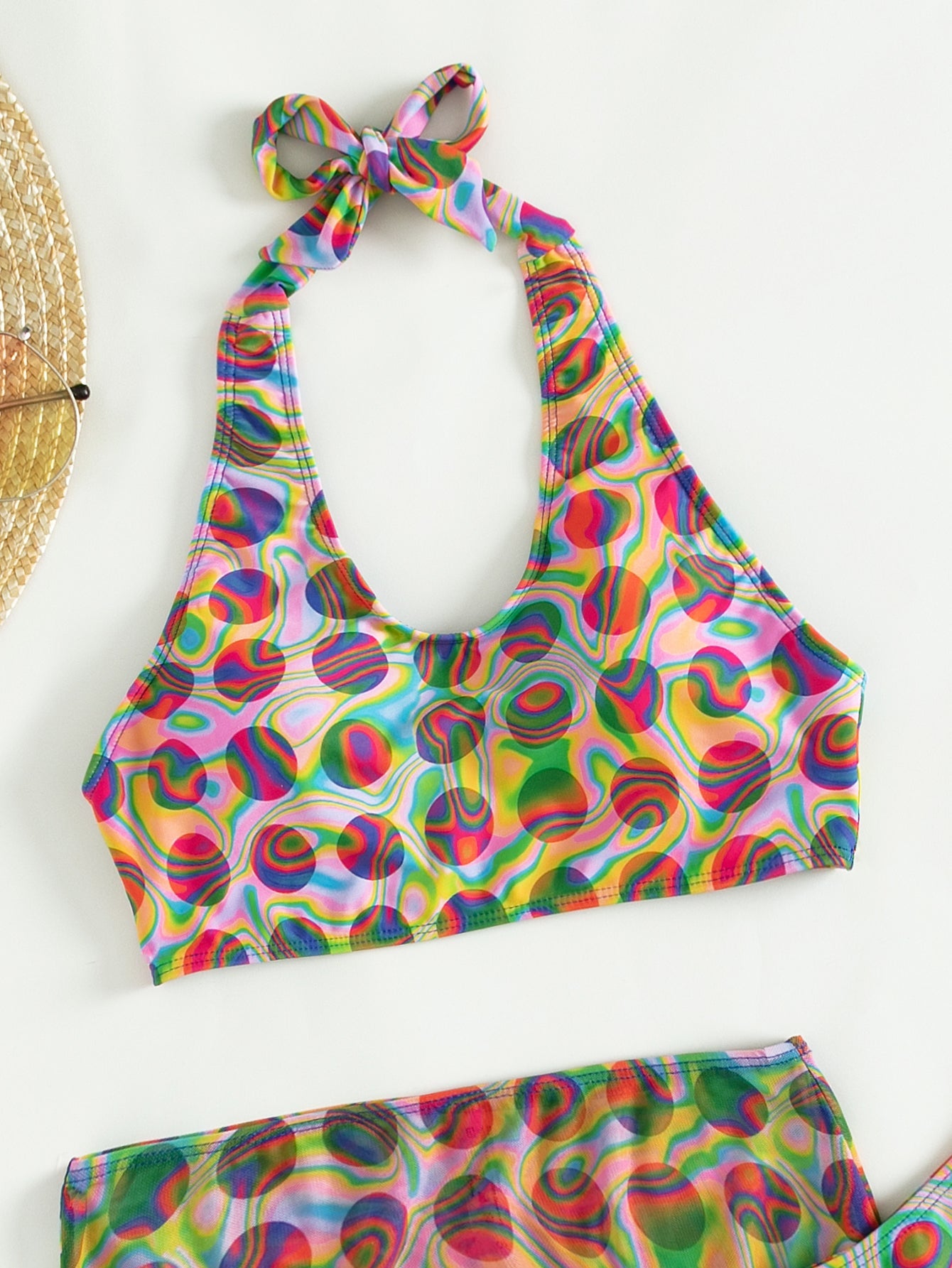 Bikini Set Split Swimsuit Women Halter High Waist Three Piece Swimsuit