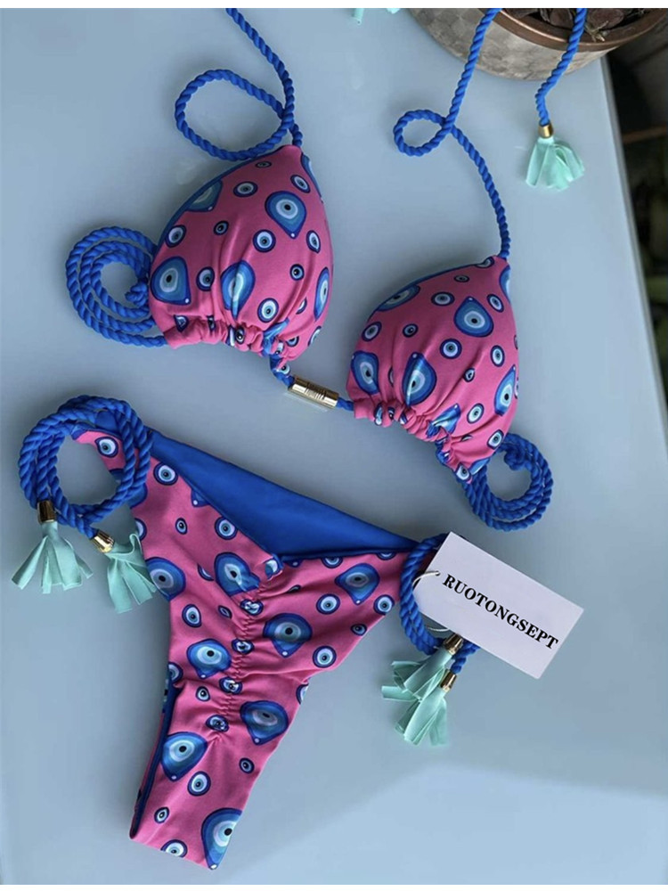 Bikini Soft Bag Low-Waist Braided Rope Printed Swimwear