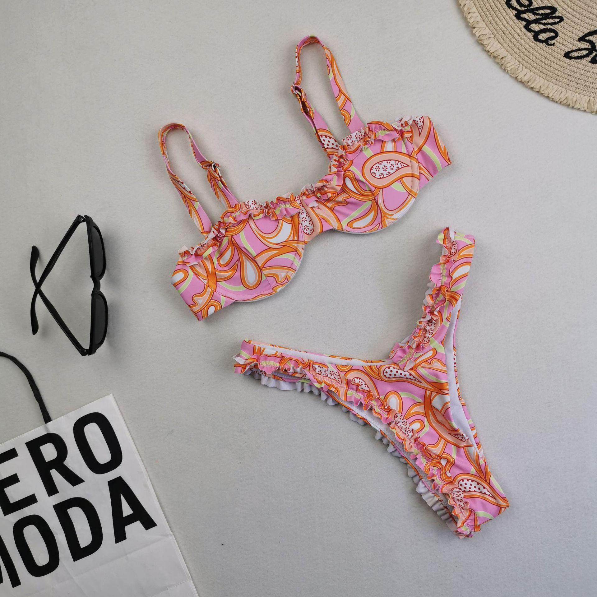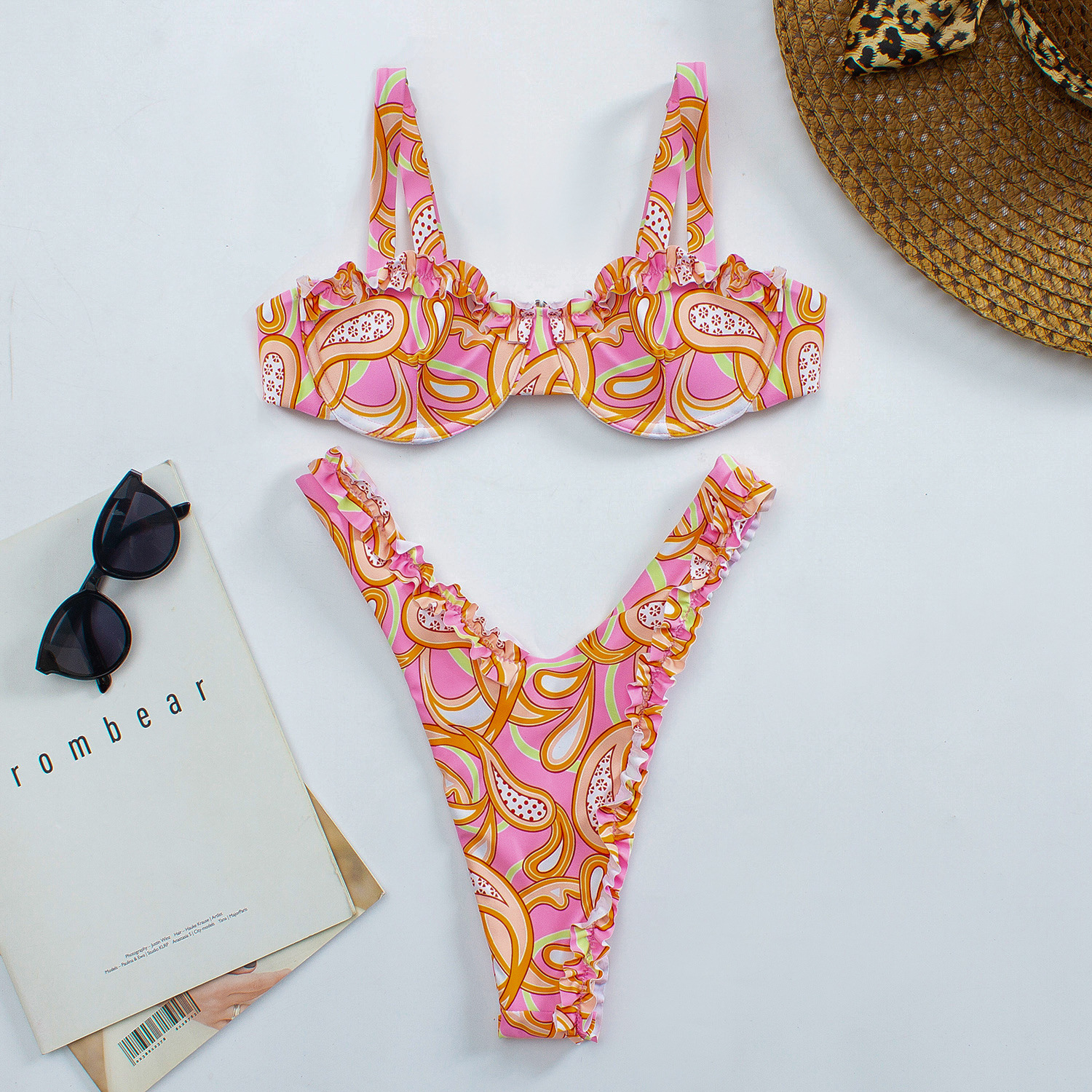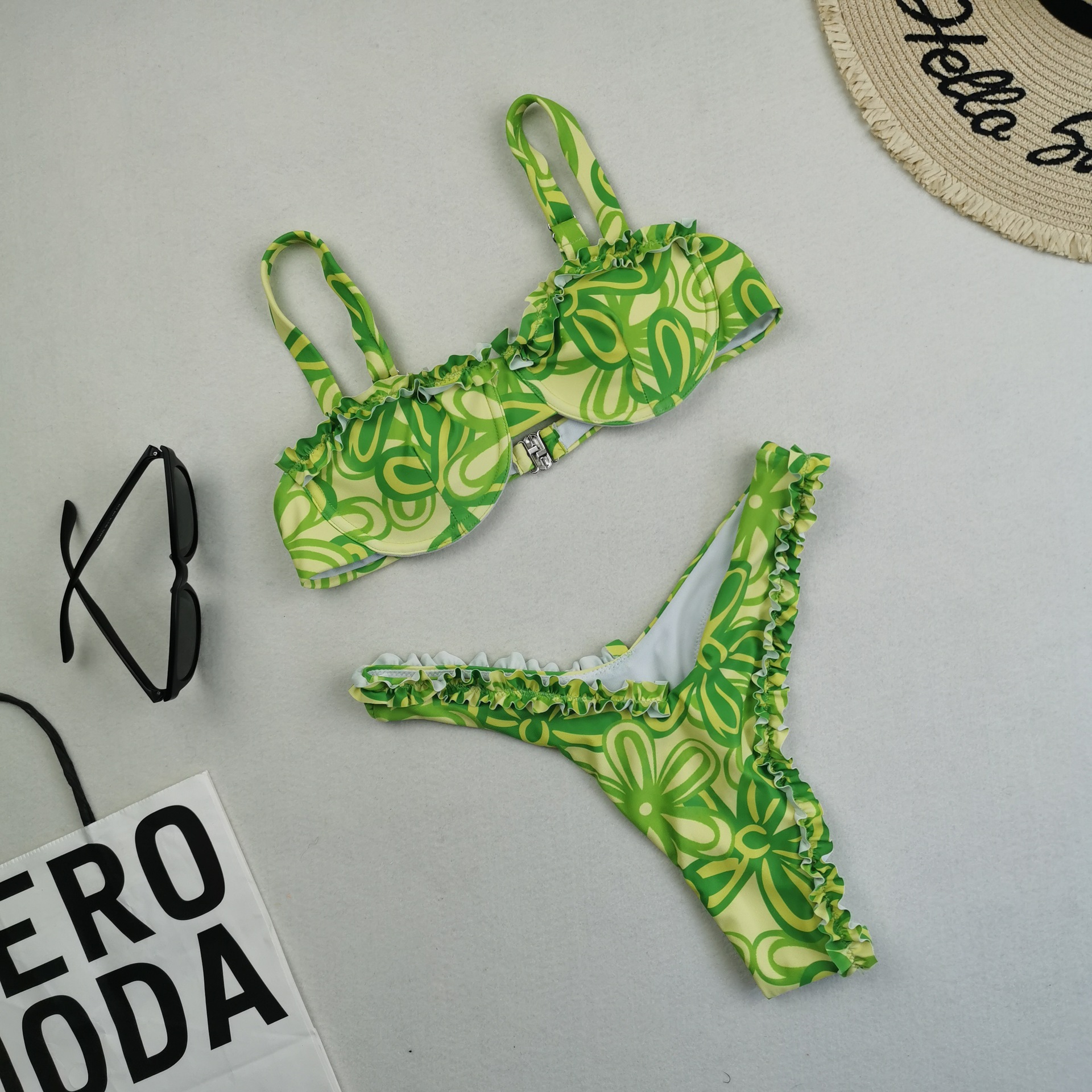 Bikini Women Digital Printing Lace Small Clear Swimsuit Women Swimsuit