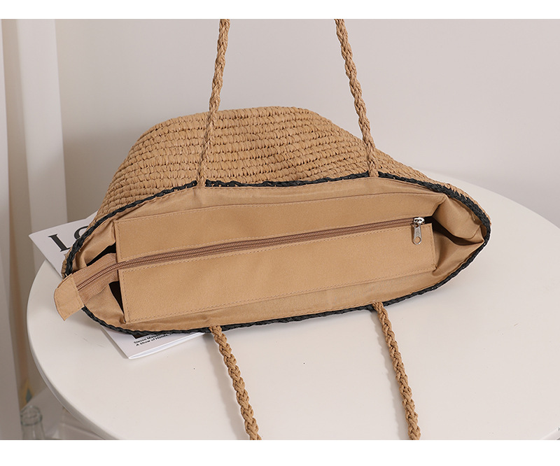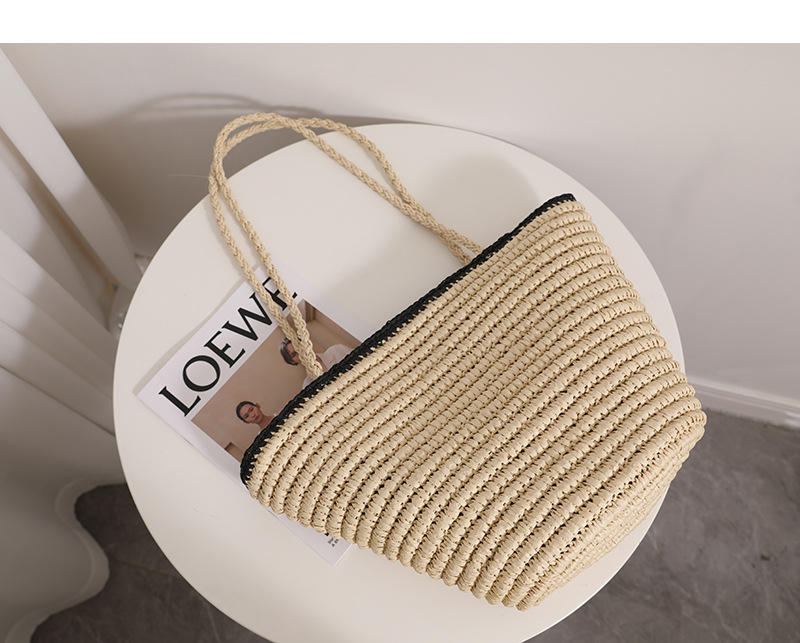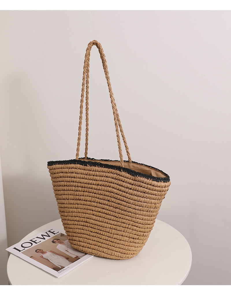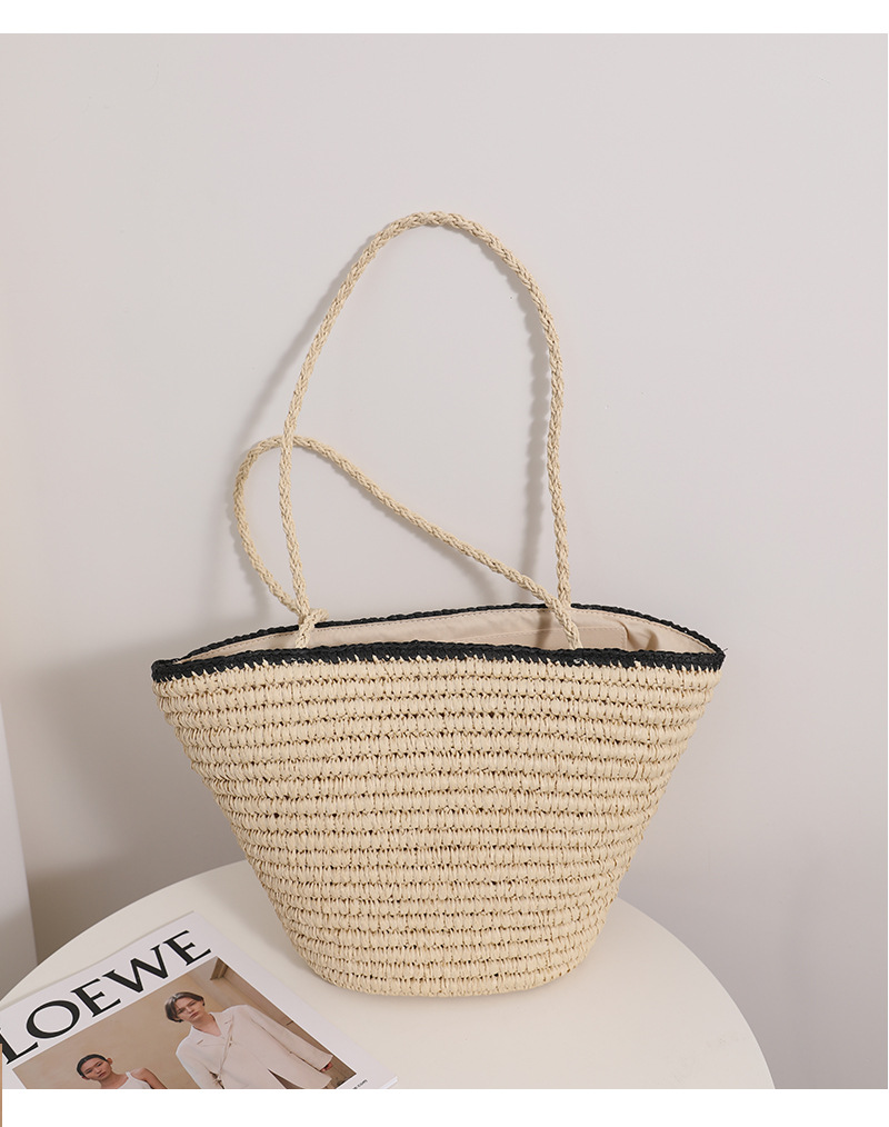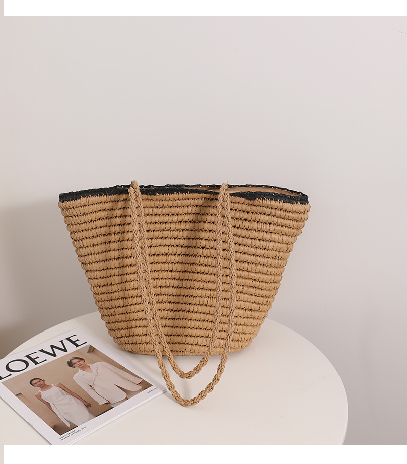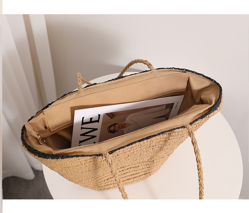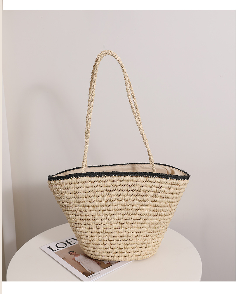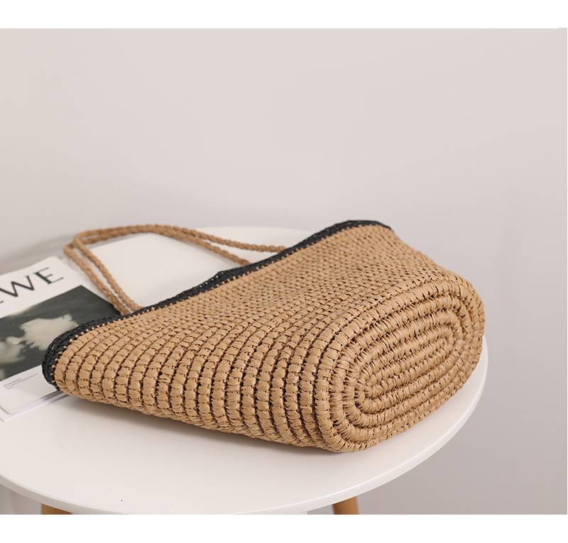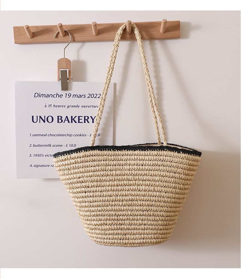Black Edge Straw Bag Contrast Color Portable Straw Bag Woven Bag Seaside Vacation Beach Bag Women Bag