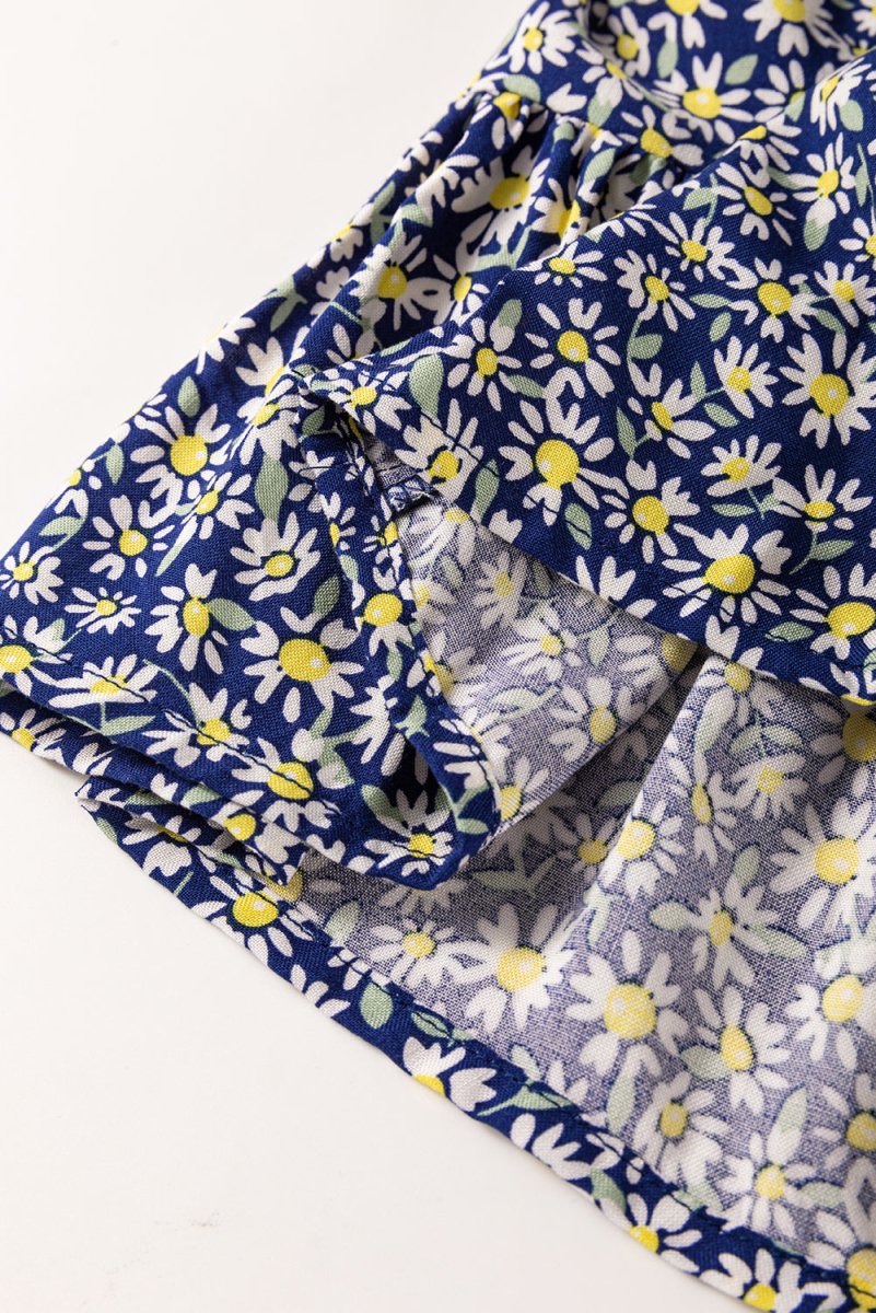 Blue Boho Floral Print Smocked Square Neck Blouse