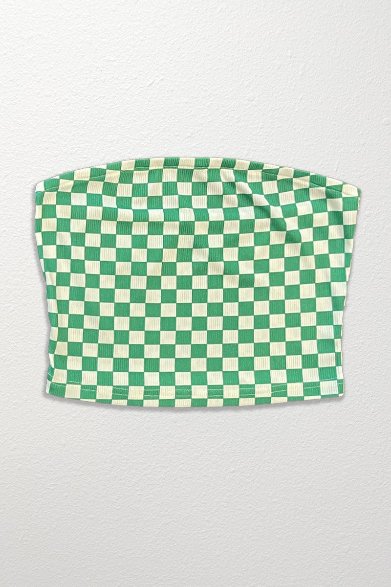 Checkered rib knit tube top