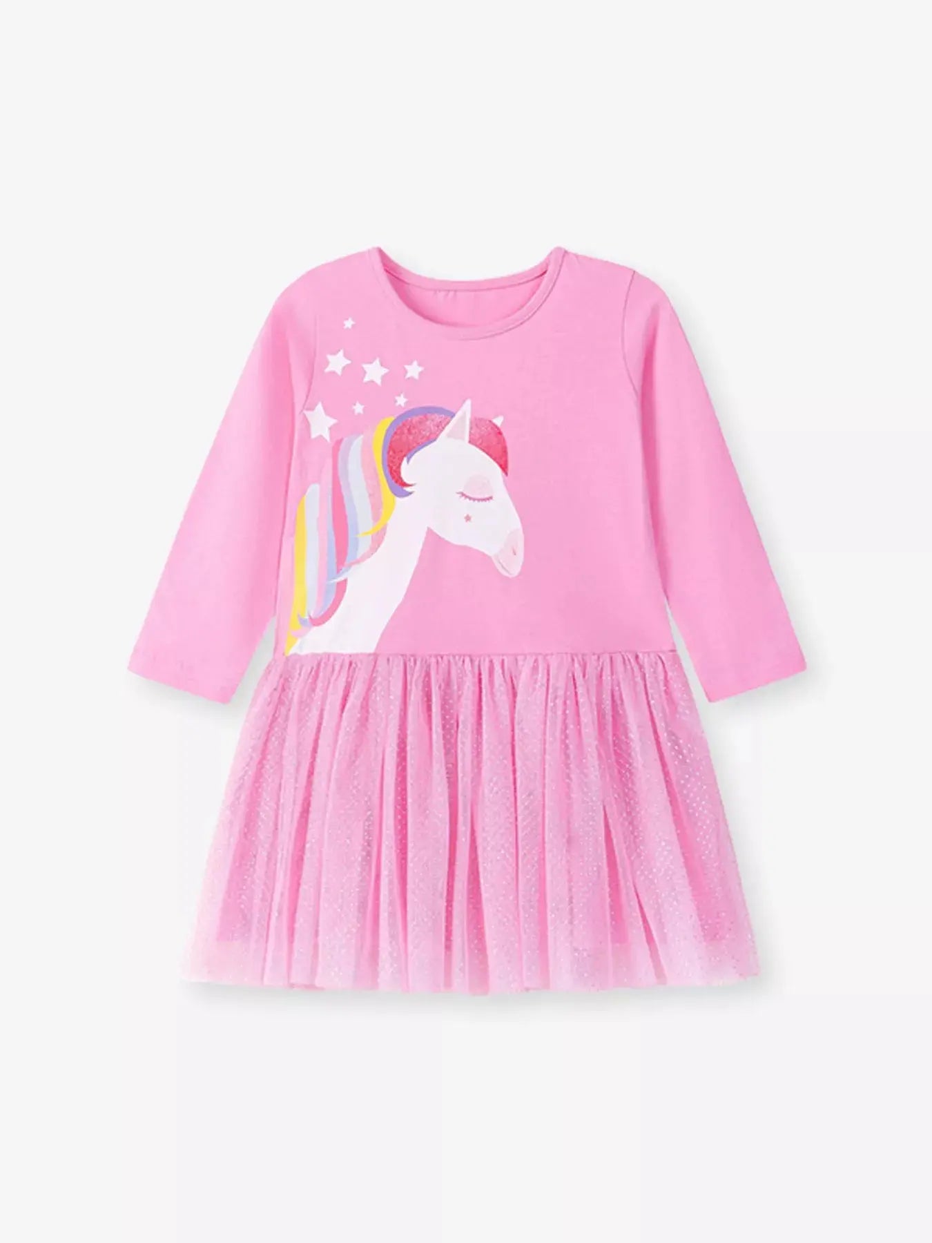 Children's Unicorn Print Long Sleeve Tulle Dress Simply Love