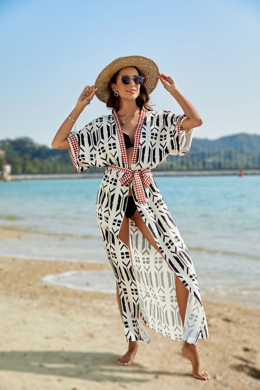 Cotton Beach Cover Up Swimsuit Outwear Sun Protection Cardigan Women Vacation Beach Coat