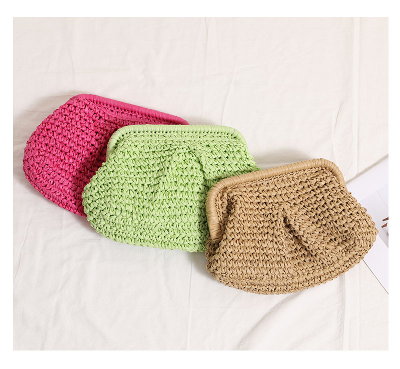 Crossbody Straw Bag Pleated Solid Color Straw Bag Woven Bag Vacation Beach Bag Women Bag