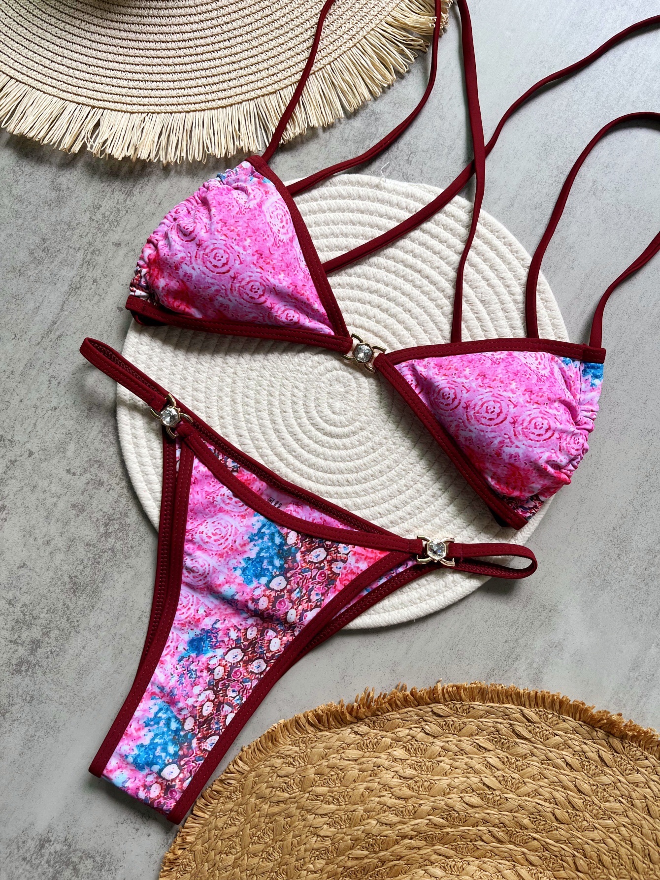 Diamond Accessories Bikini Printed Swimsuit Beach Sexy Women Swimsuit