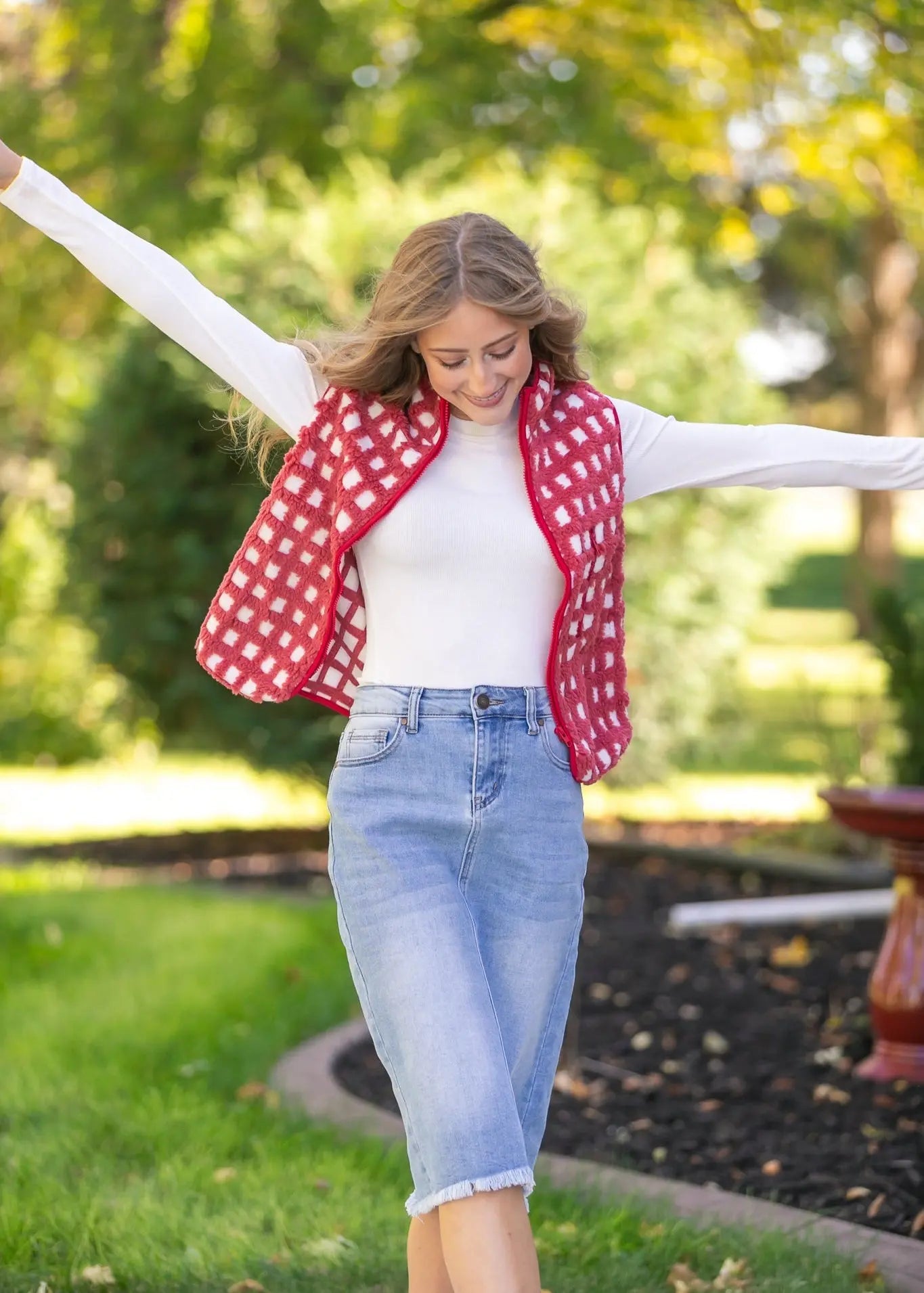 The Drew Raw Hem Midi Denim Skirt brings effortless edge to your everyday. Designed with a modest midi length and finished with a raw hem, this denim skirt blends structure with softness for versatile wear. The clean silhouette, functional pockets, and easy back slit make it a timeless piece that moves with you from weekday errands to weekend plans!