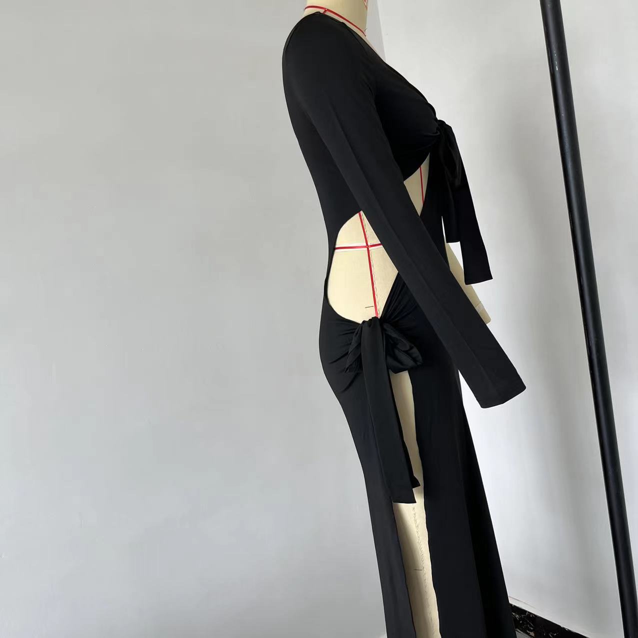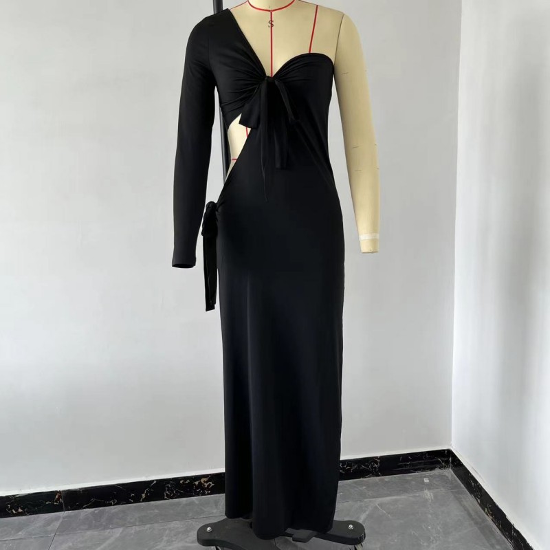 Elegant One Shoulder Dress Sexy Hollow Out Cutout out Backless Side Slit Lace up Dress