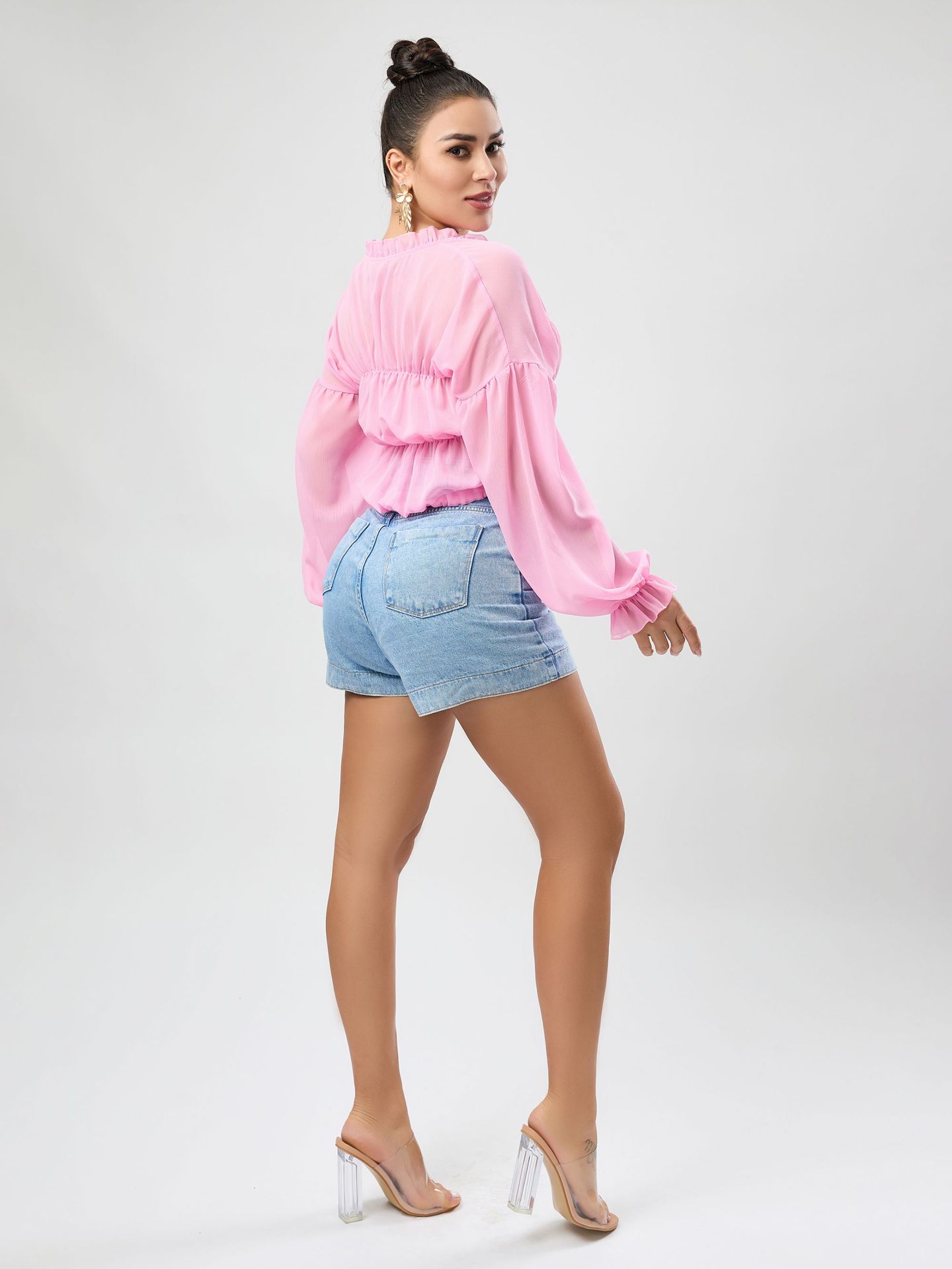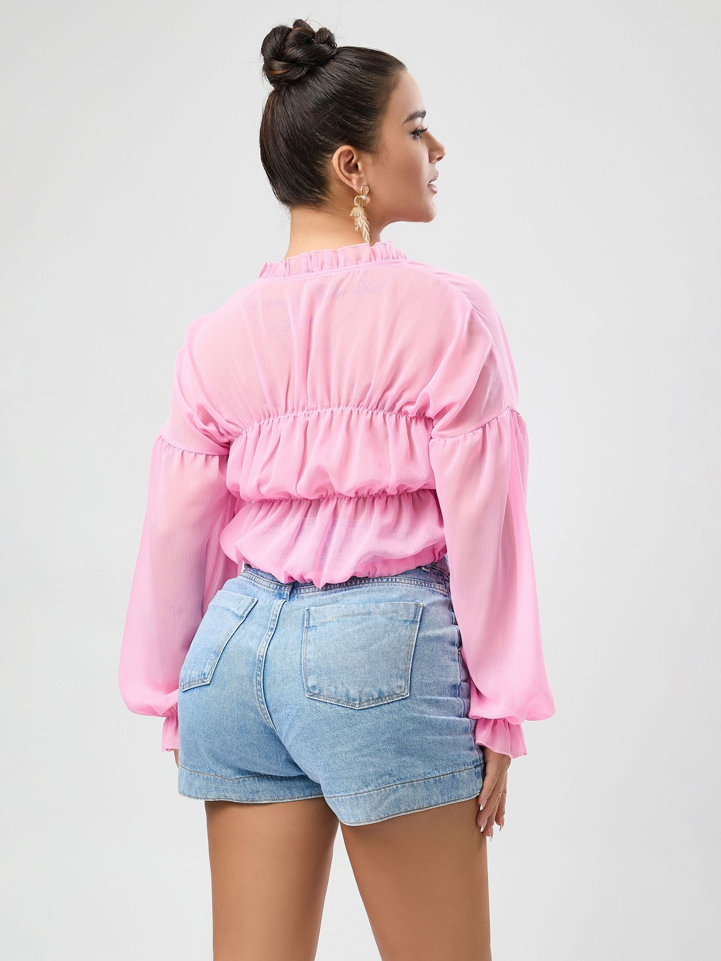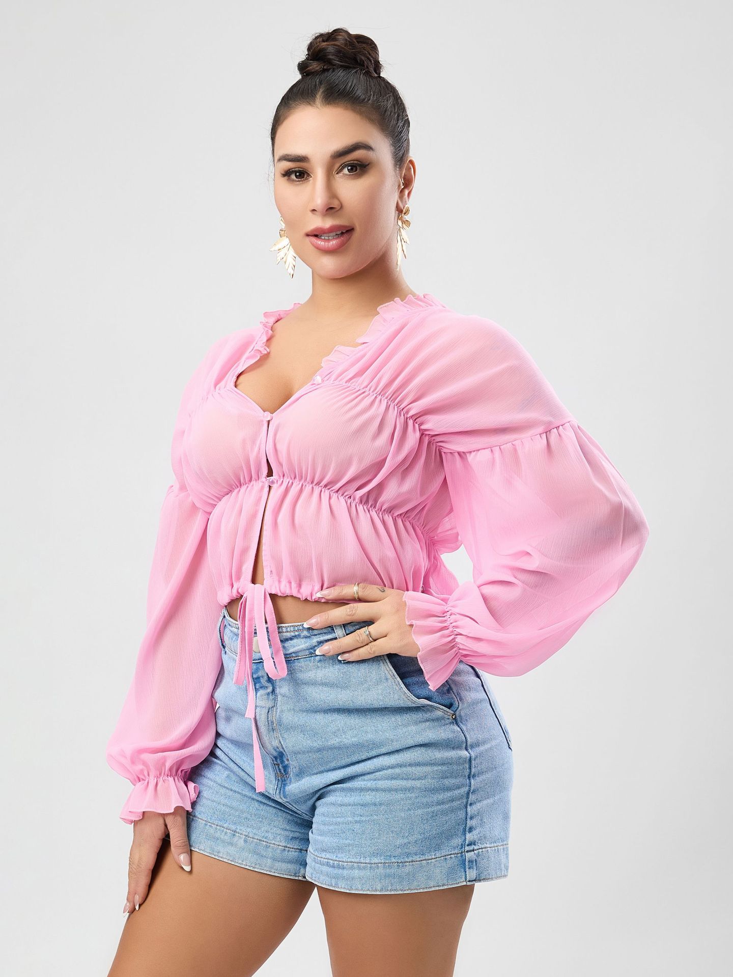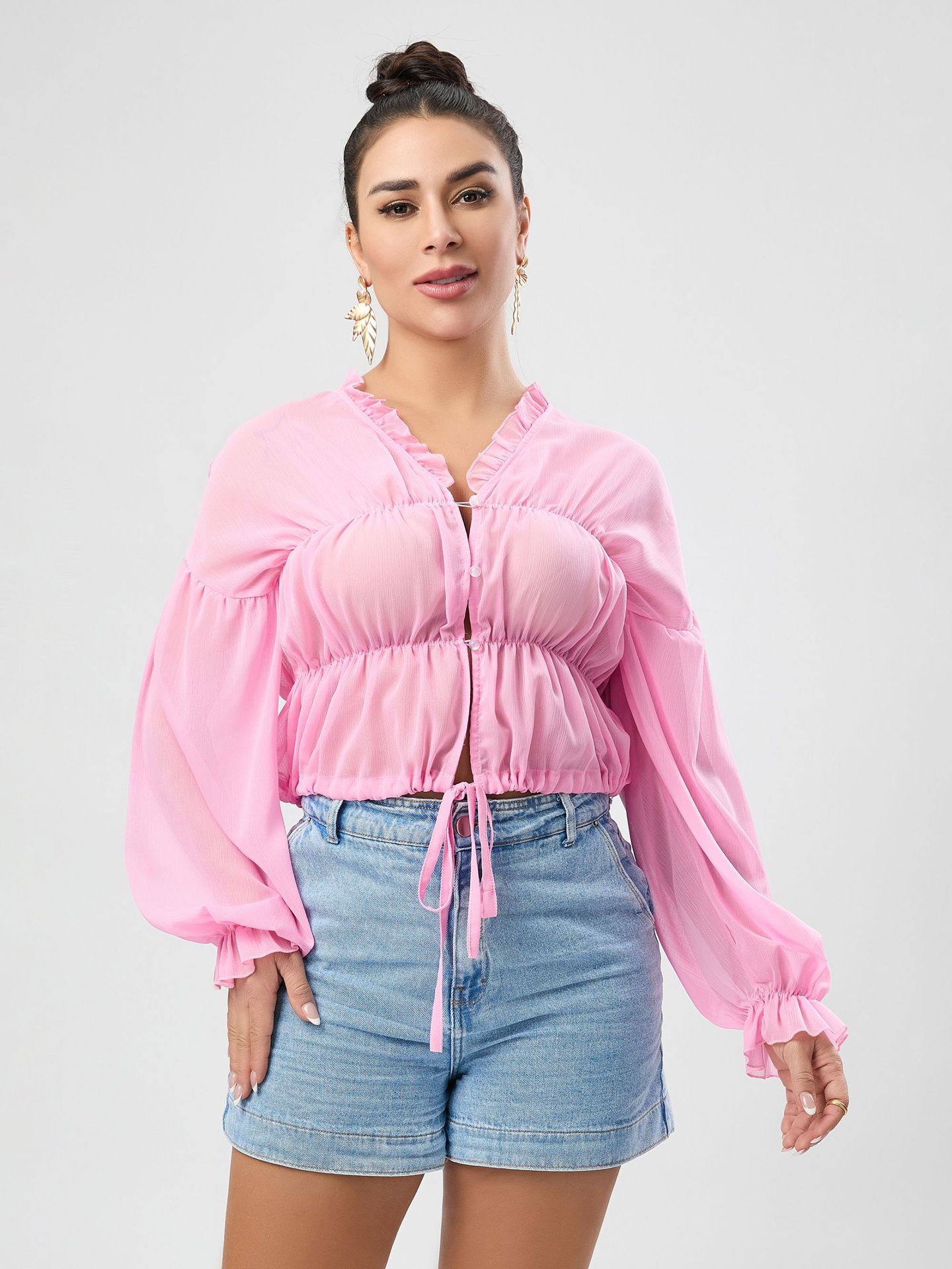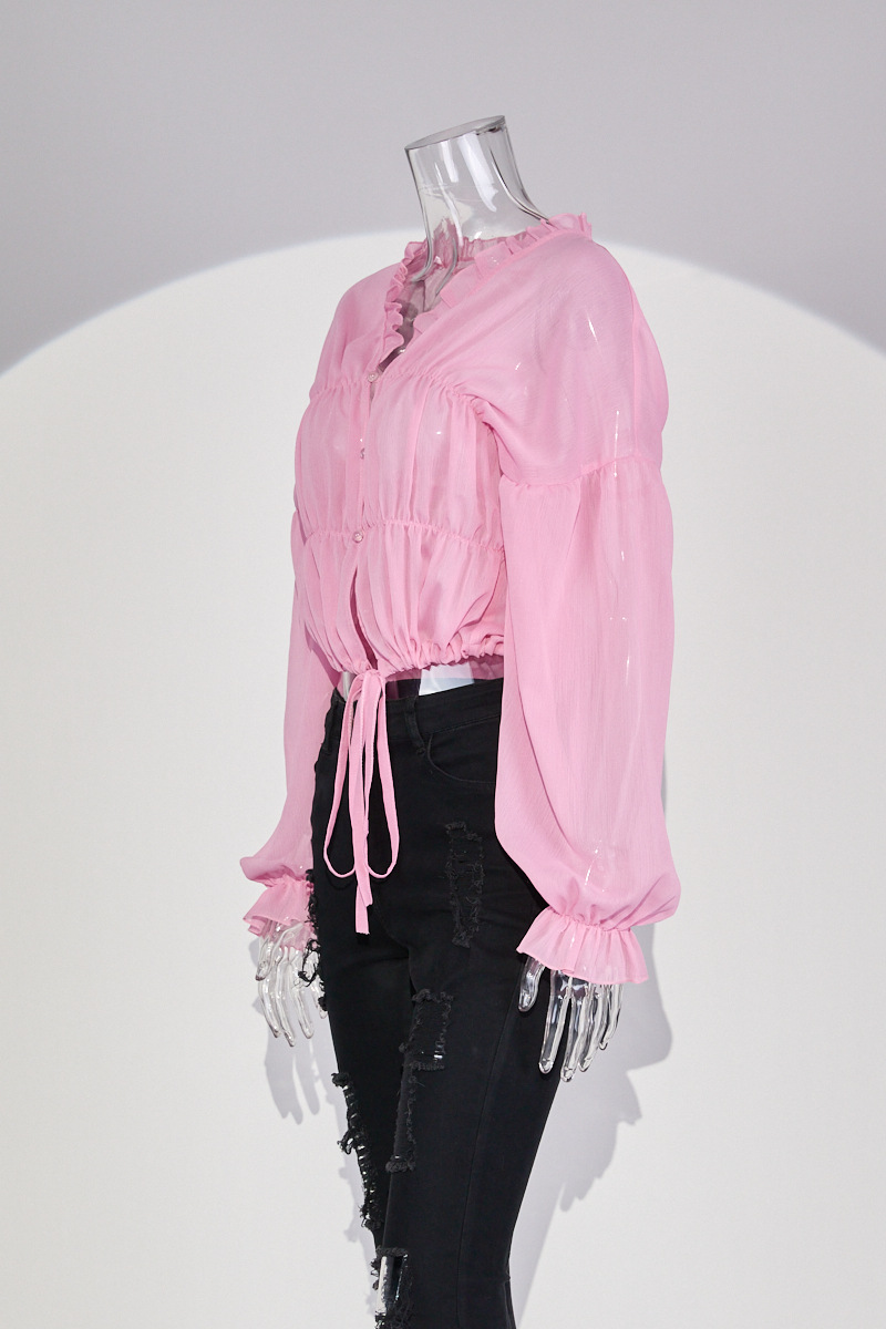 Fall Casual Women Wear Beach Cover Up Holiday Chiffon Bell Sleeve Top