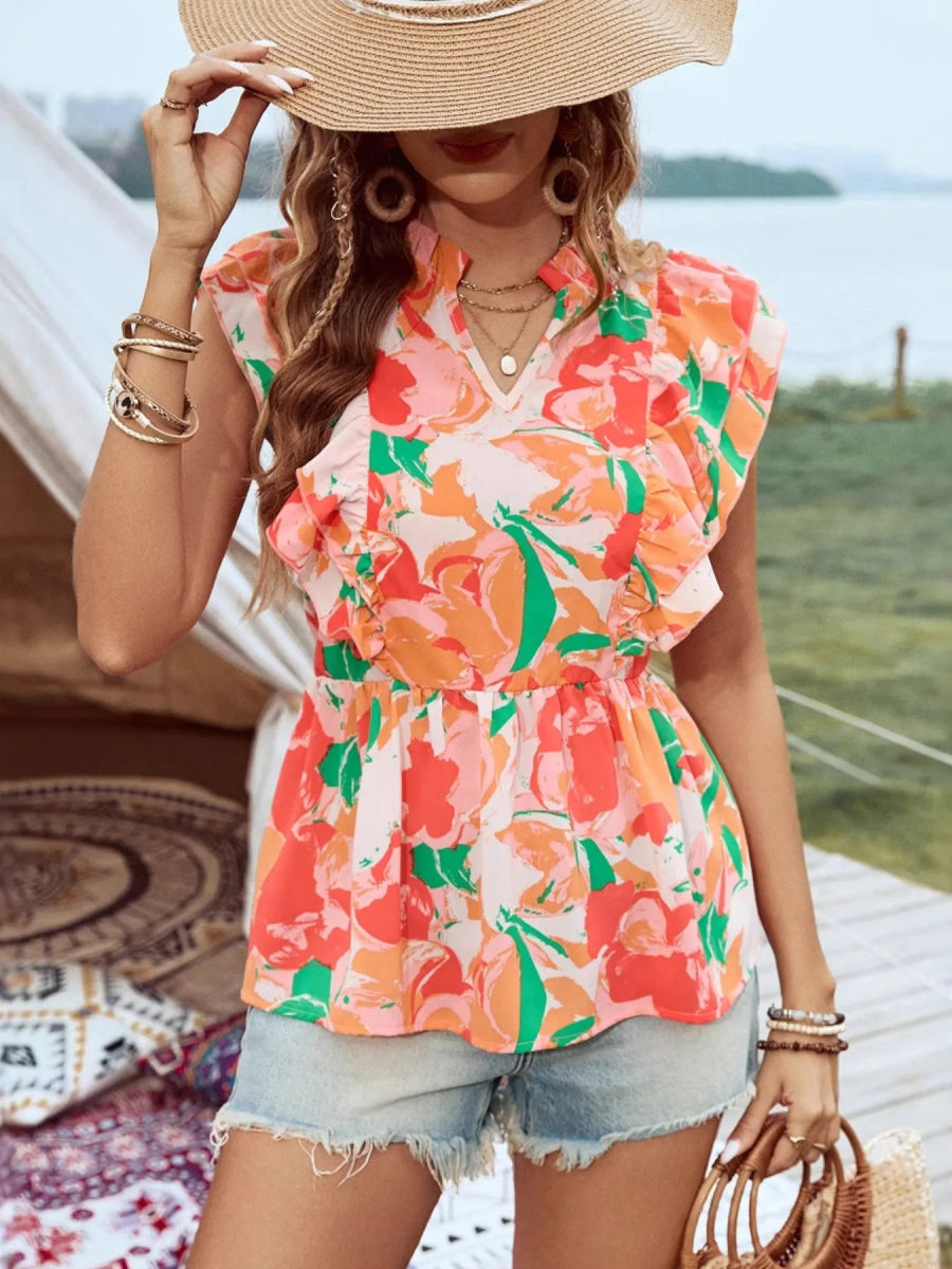 Floral Ruffle Cap Sleeve Blouse - Love Salve