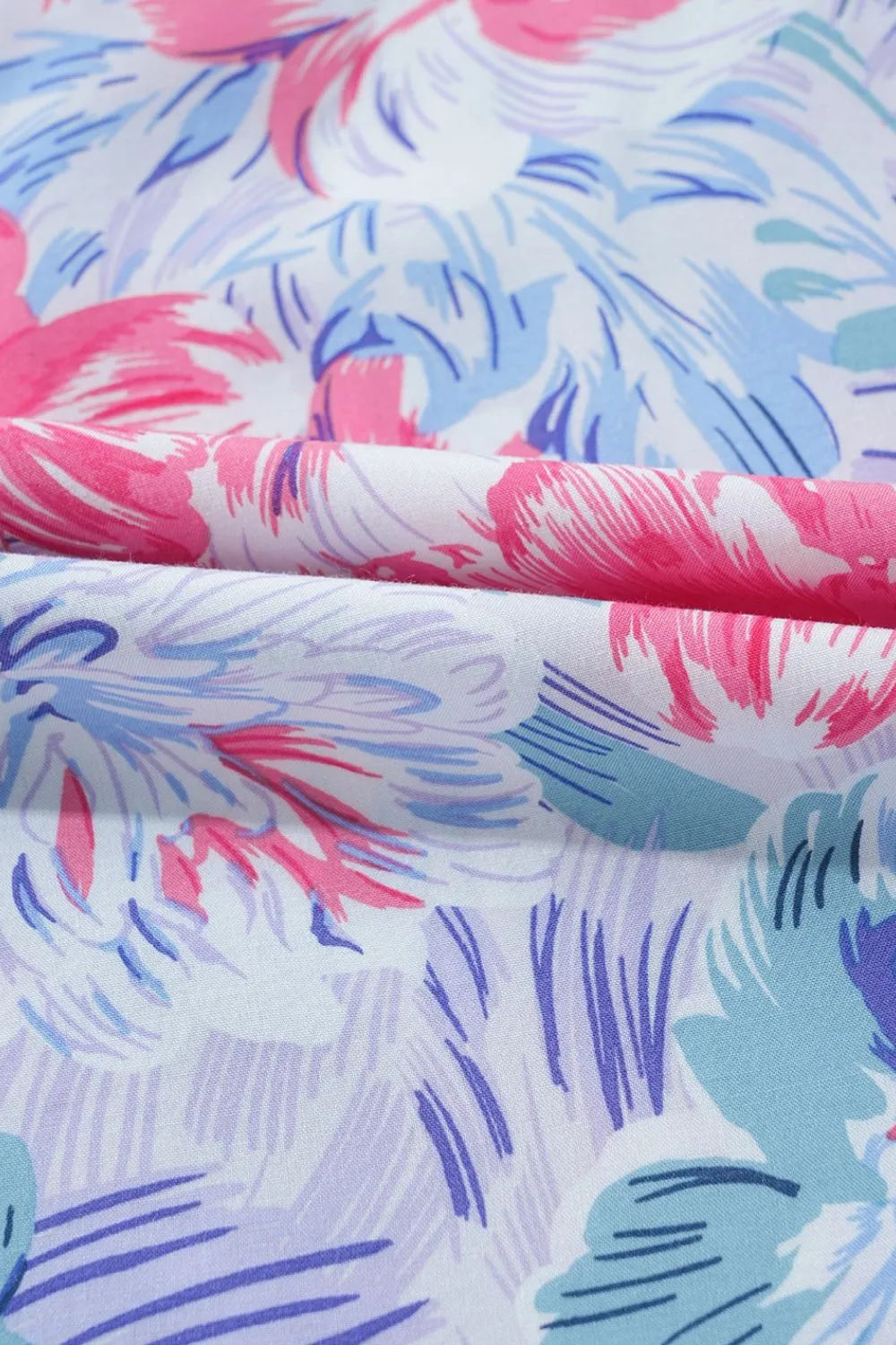 The vibrant floral print features pink, blue, and green tones across a soft background, creating a versatile piece you can dress up with sandals or keep casual with flats.