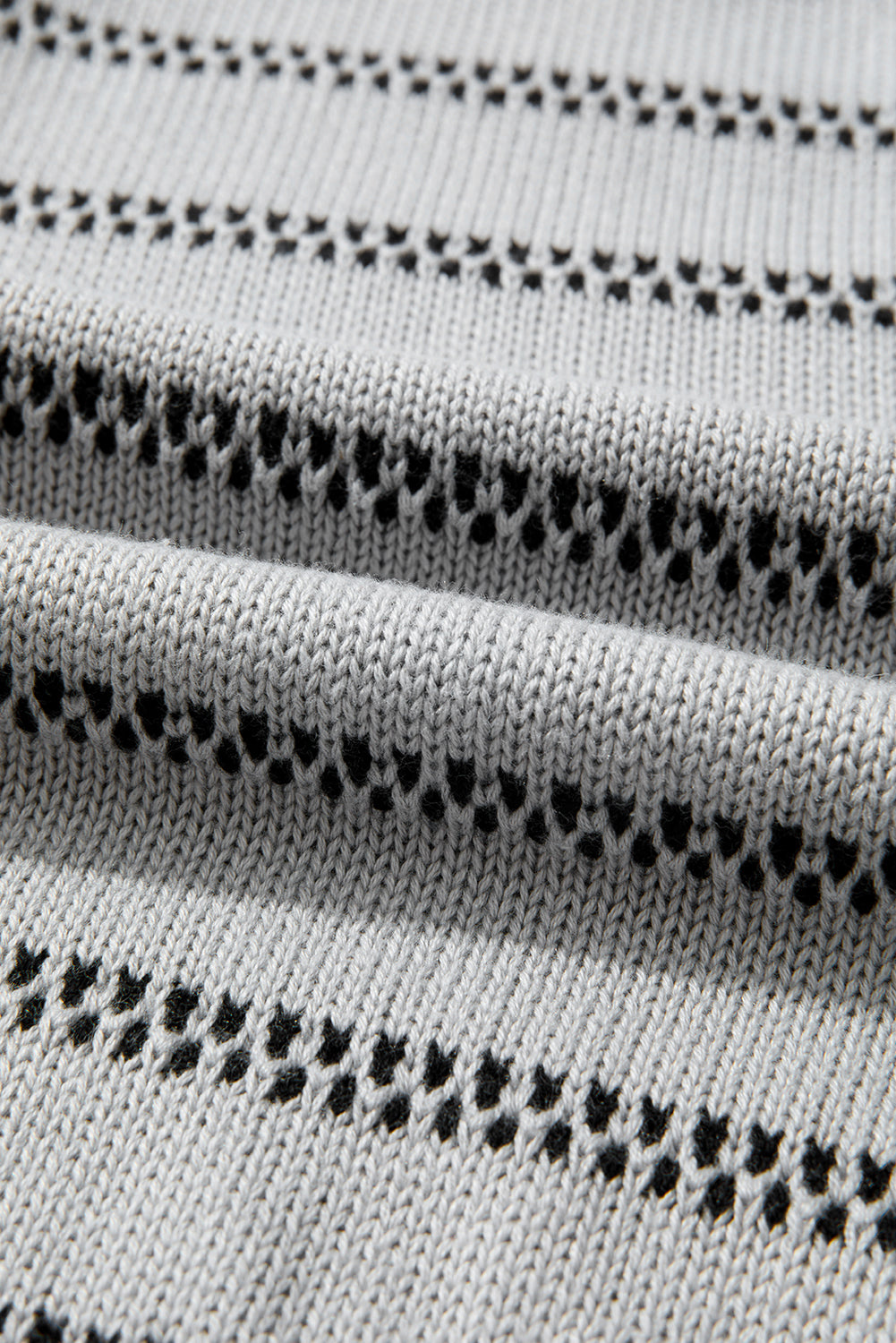 Gray Stripe Button Front Ribbed Trim Short Cardigan
