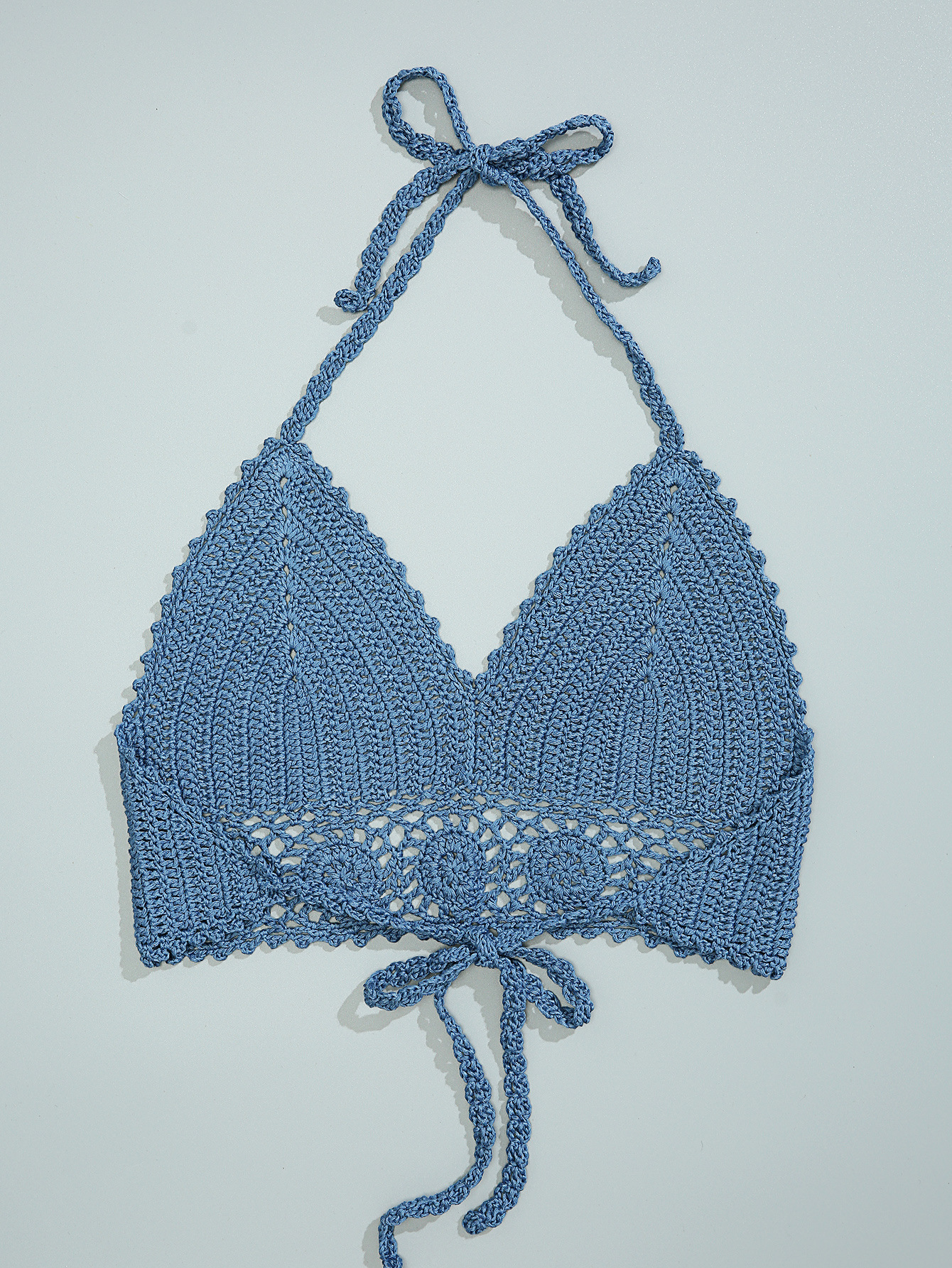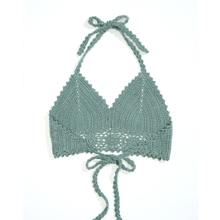 Hand Crocheting Knitted Strap Halter Bikini Top Beach Sexy Backless Bra Swimsuit Crochet hook