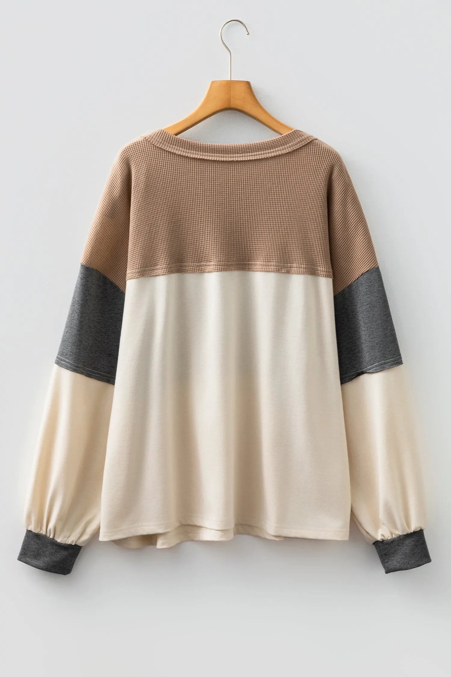 Jet Stream Waffle Patchwork Colorblock Plus Size Knit Jumper With Half Button