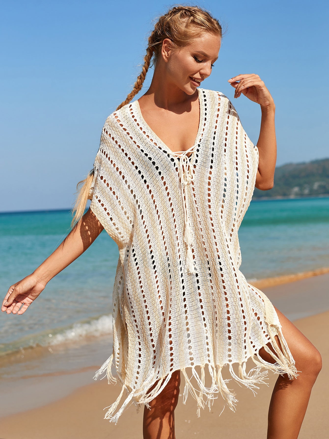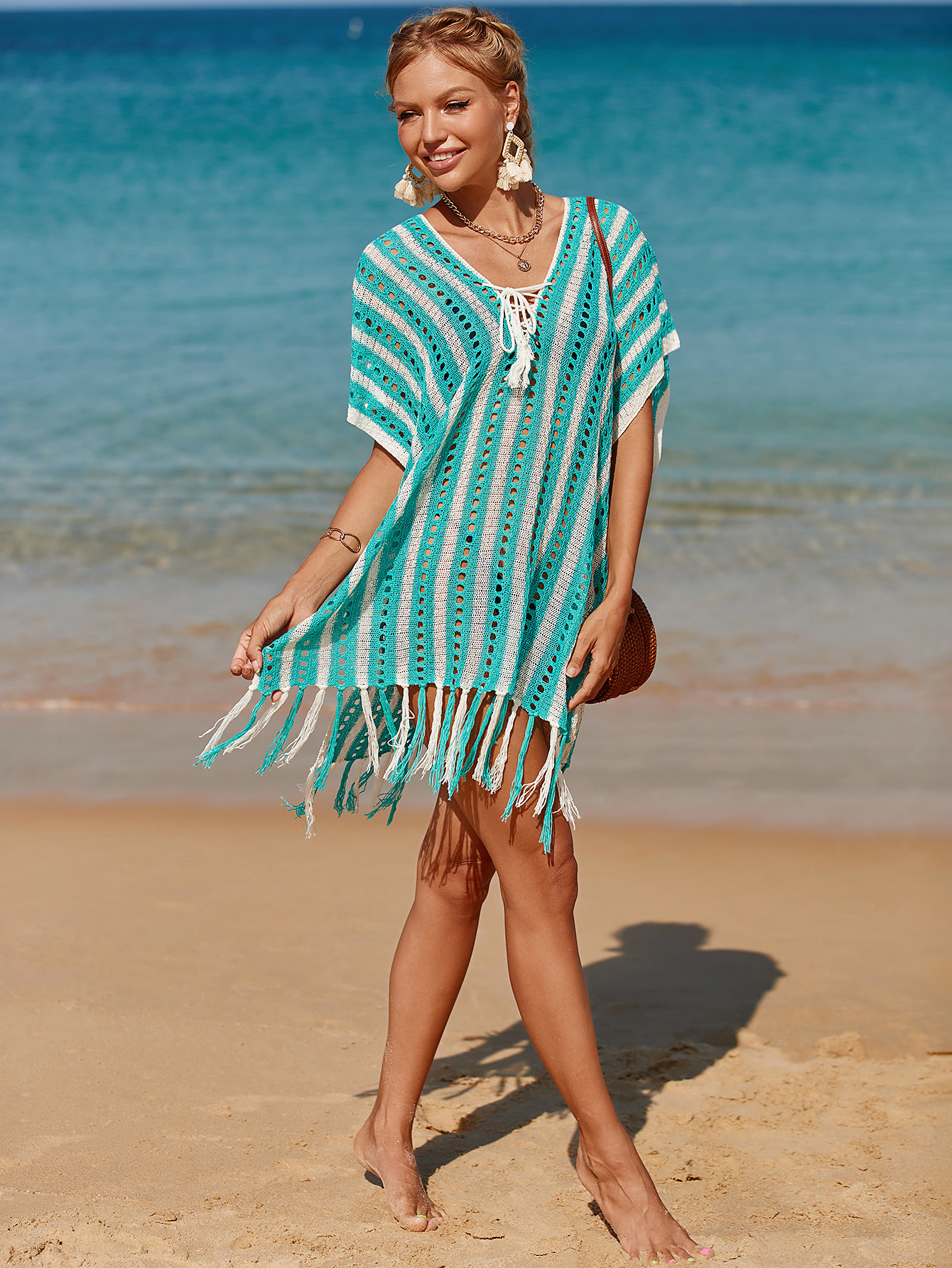 Knitted Hollow-out Headwear Blouse Holiday Casual Beach Bikini Cover 3 Colors