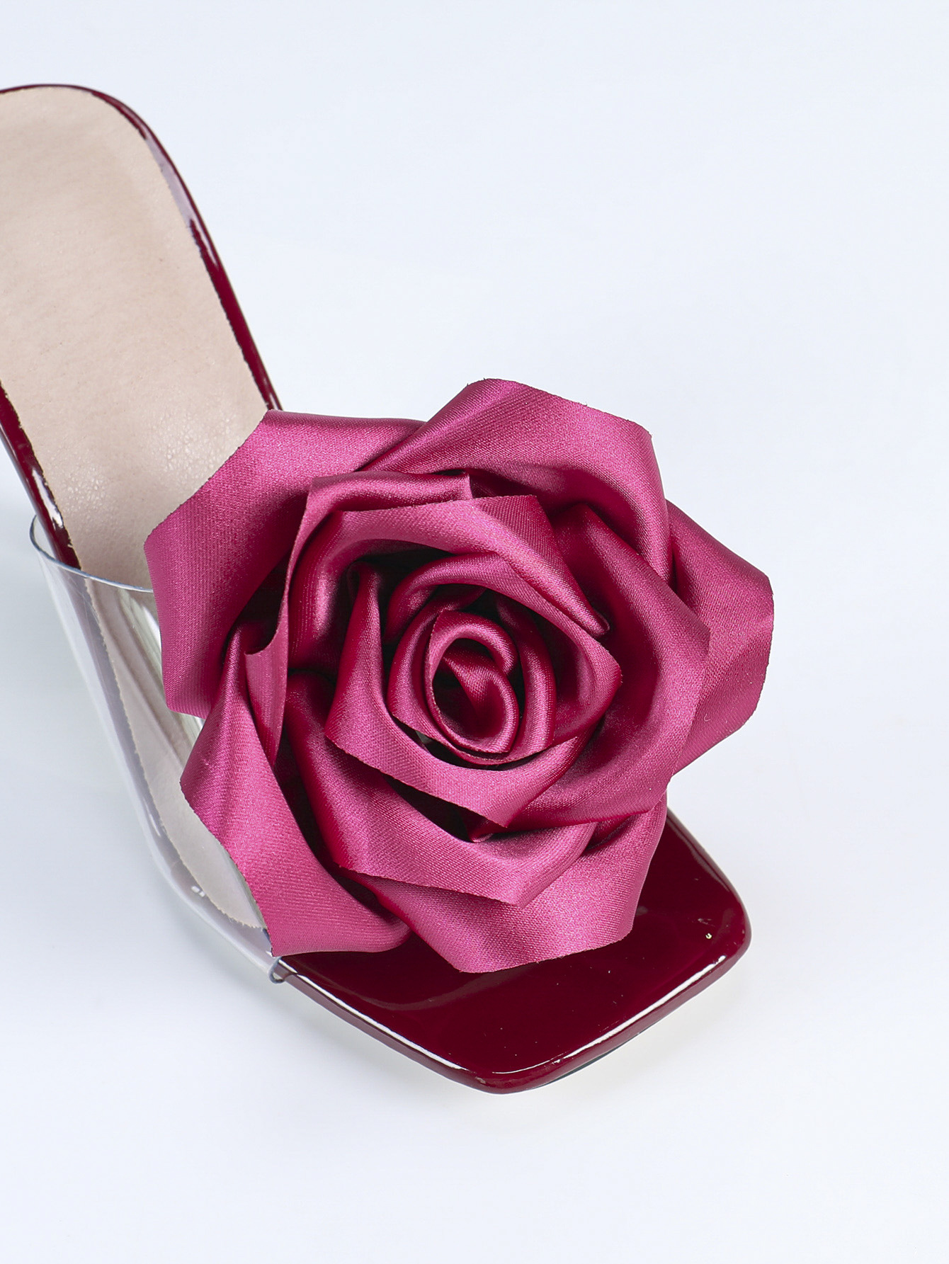 Ladies Sandals High Heel Square Head Master Three Dimensional Floral Stiletto Heel Slippers