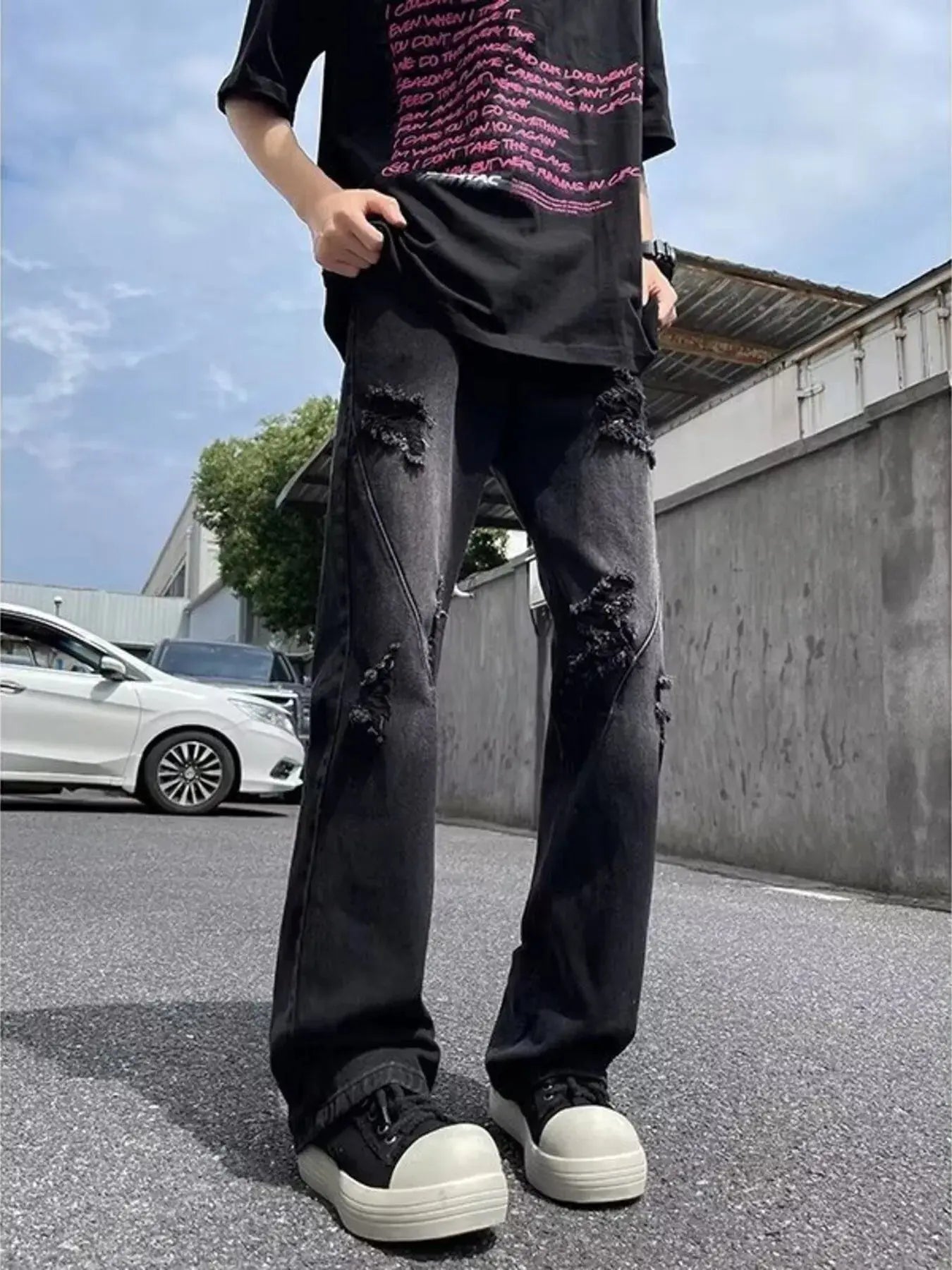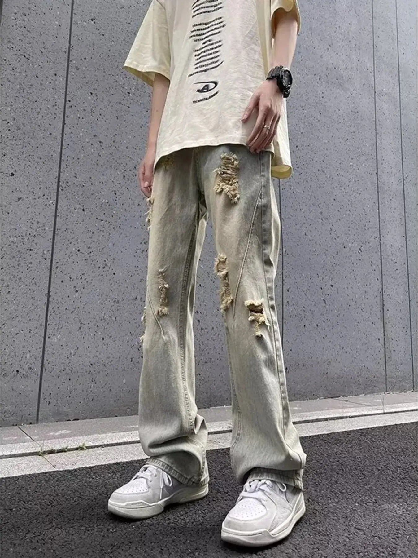 - Features:Distressed,Basic style